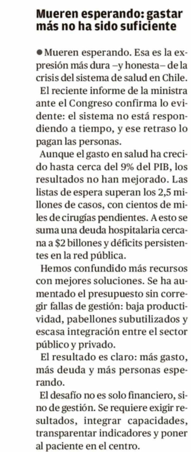 COLUMNAS DE OPINIÓN: Mueren esperando: gastar más no ha sido suficiente