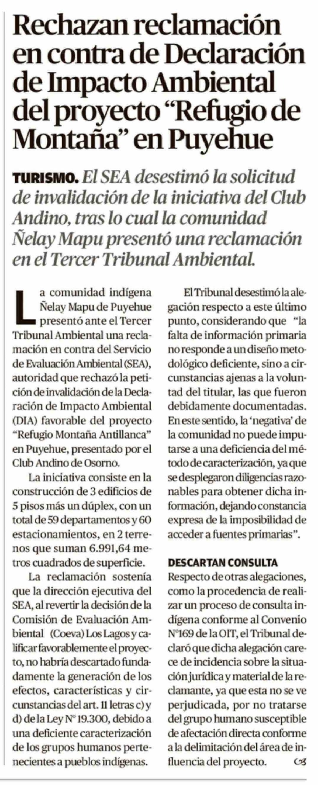 Rechazan reclamación en contra de Declaración de Impacto Ambiental del proyecto "Refugio de Montaña" en Puyehue