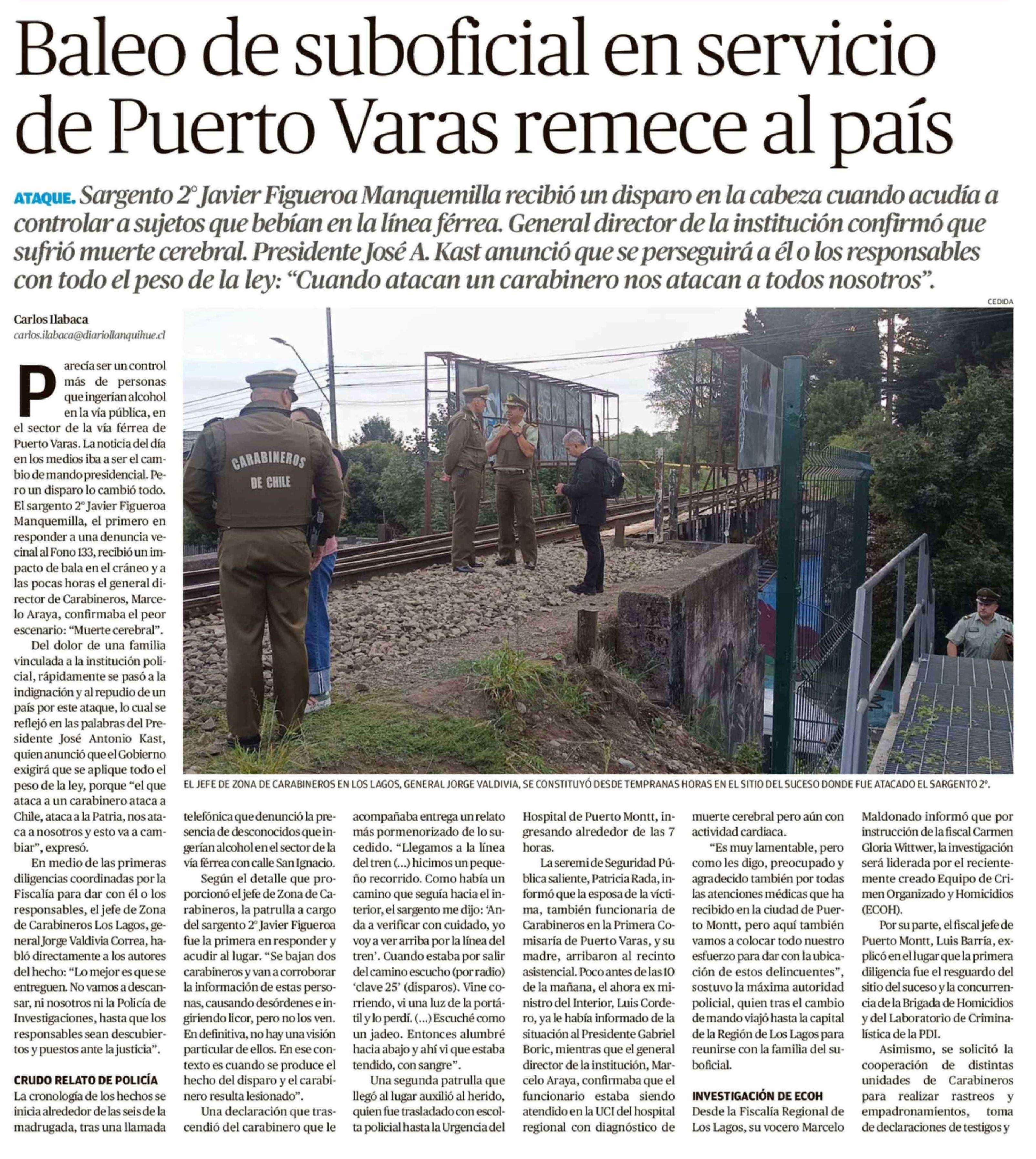 Baleo de suboficial en servicio de Puerto Varas remece al país