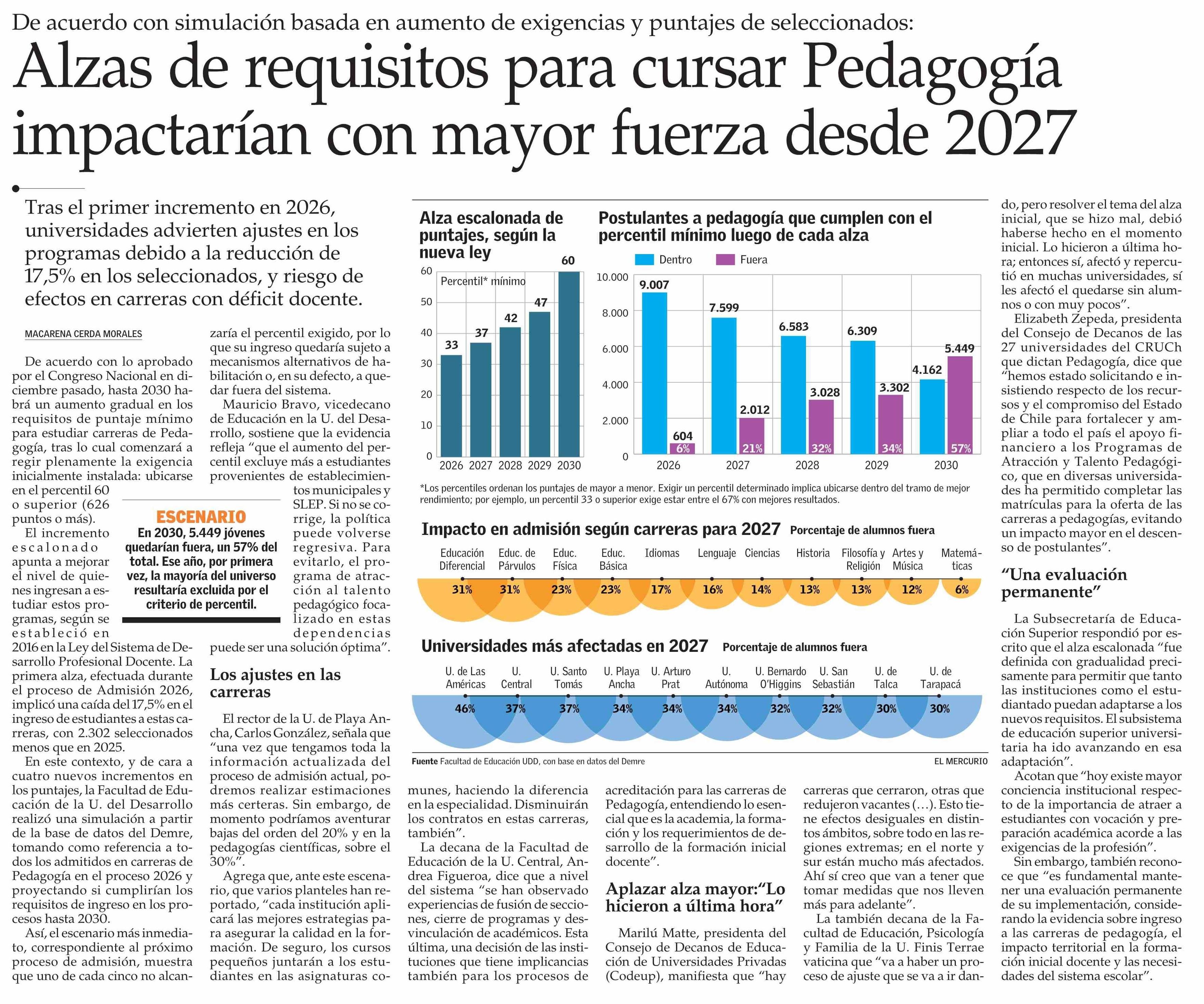 Alzas de requisitos para cursar Pedagogía impactarían con mayor fuerza desde 2027
