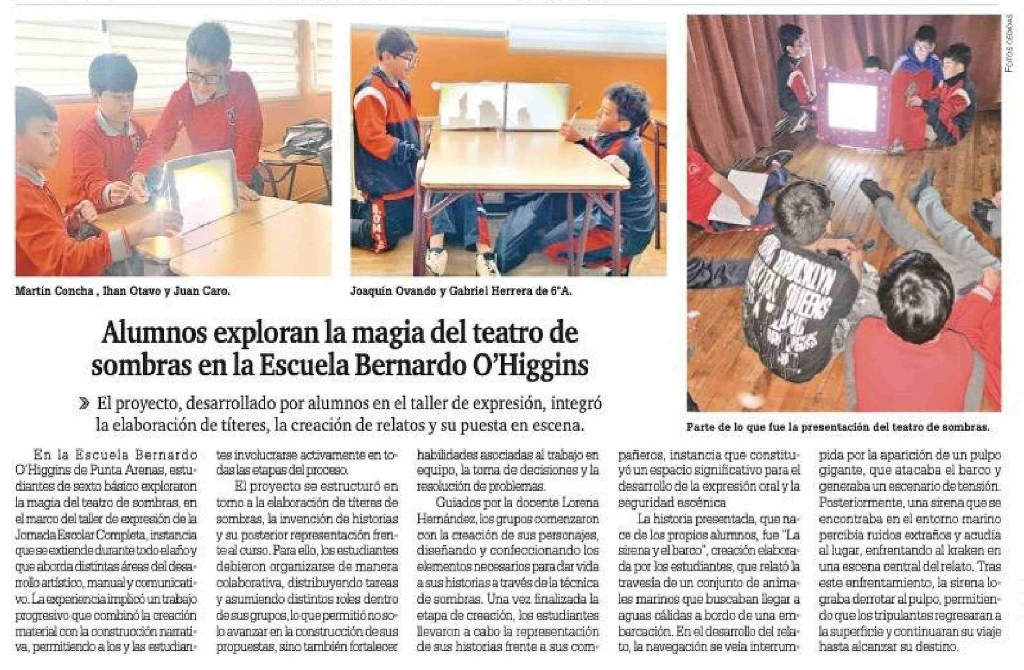 Alumnos exploran la magia del teatro de sombras en la Escuela Bernardo O'Higgins