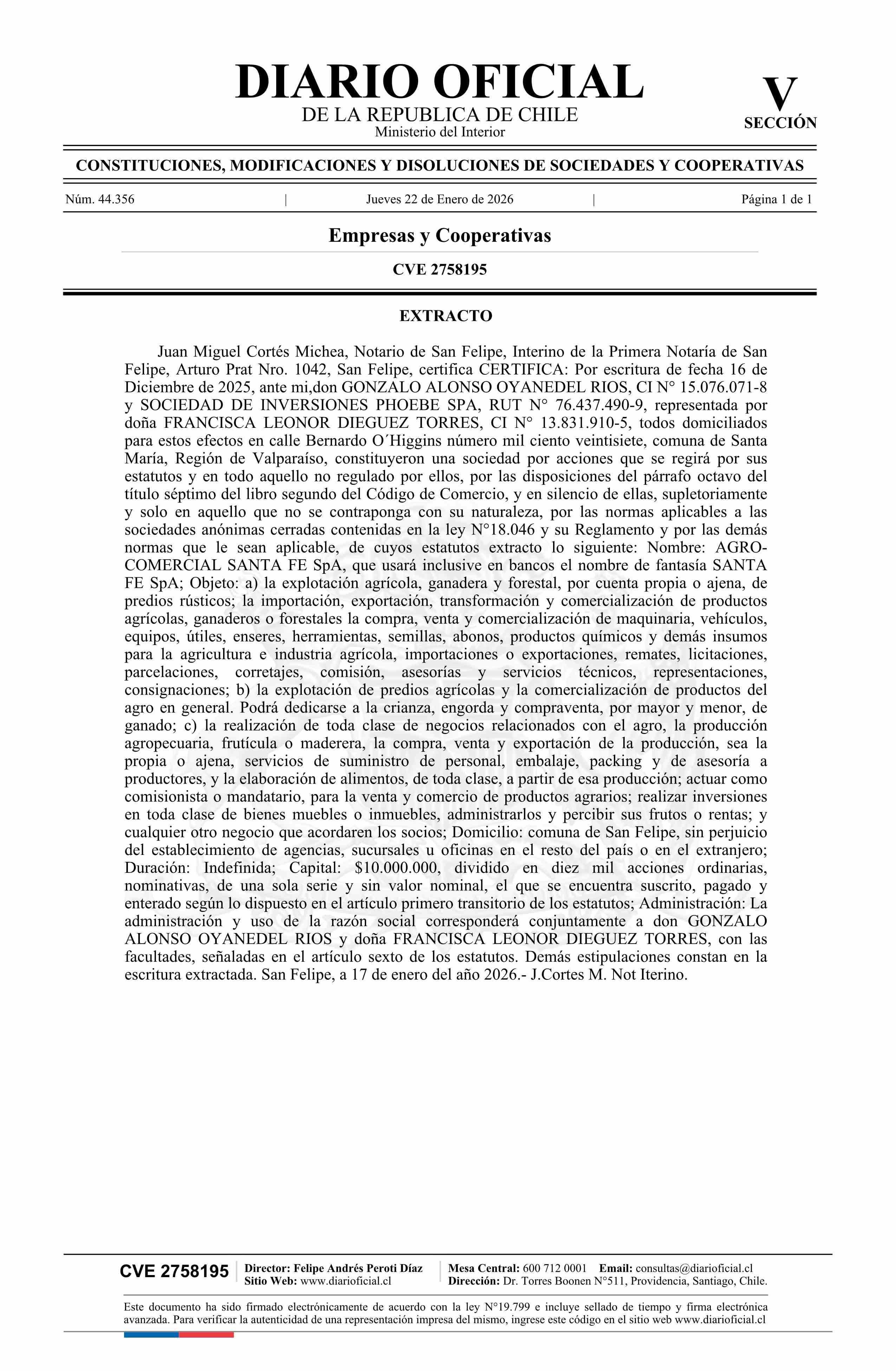 Diario Oficial Edición Electrónica (Diario Oficial de Chile - 5 Empresas Y Cooper)