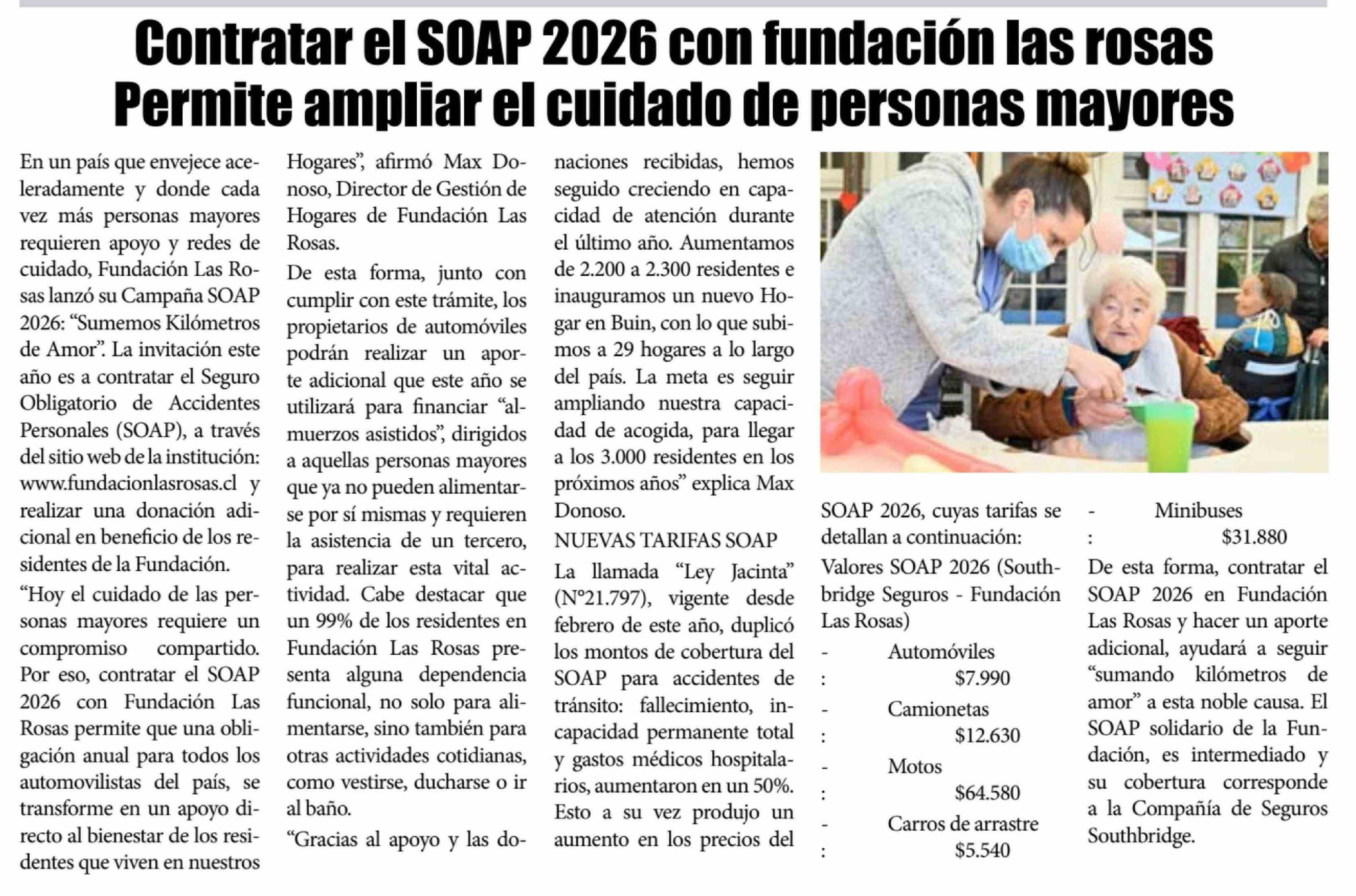 Contratar el SOAP 2026 con fundación las rosas Permite ampliar el cuidado de personas mayores