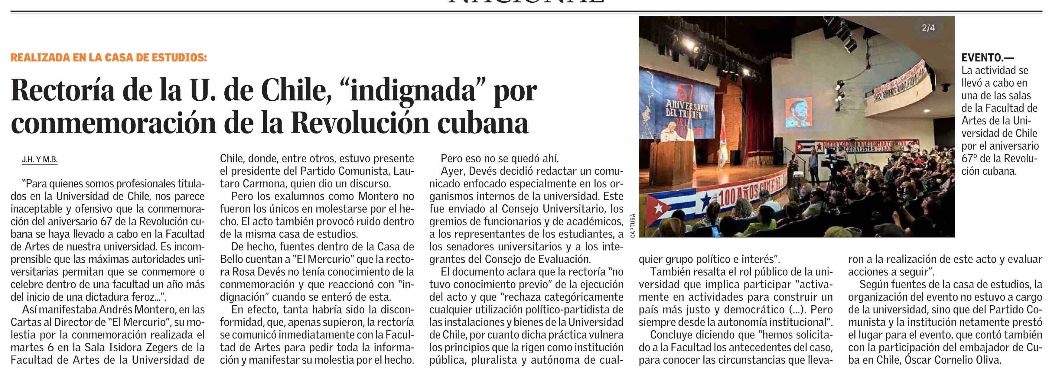 Rectoría de la U. de Chile, “indignada” por conmemoración de la Revolución cubana