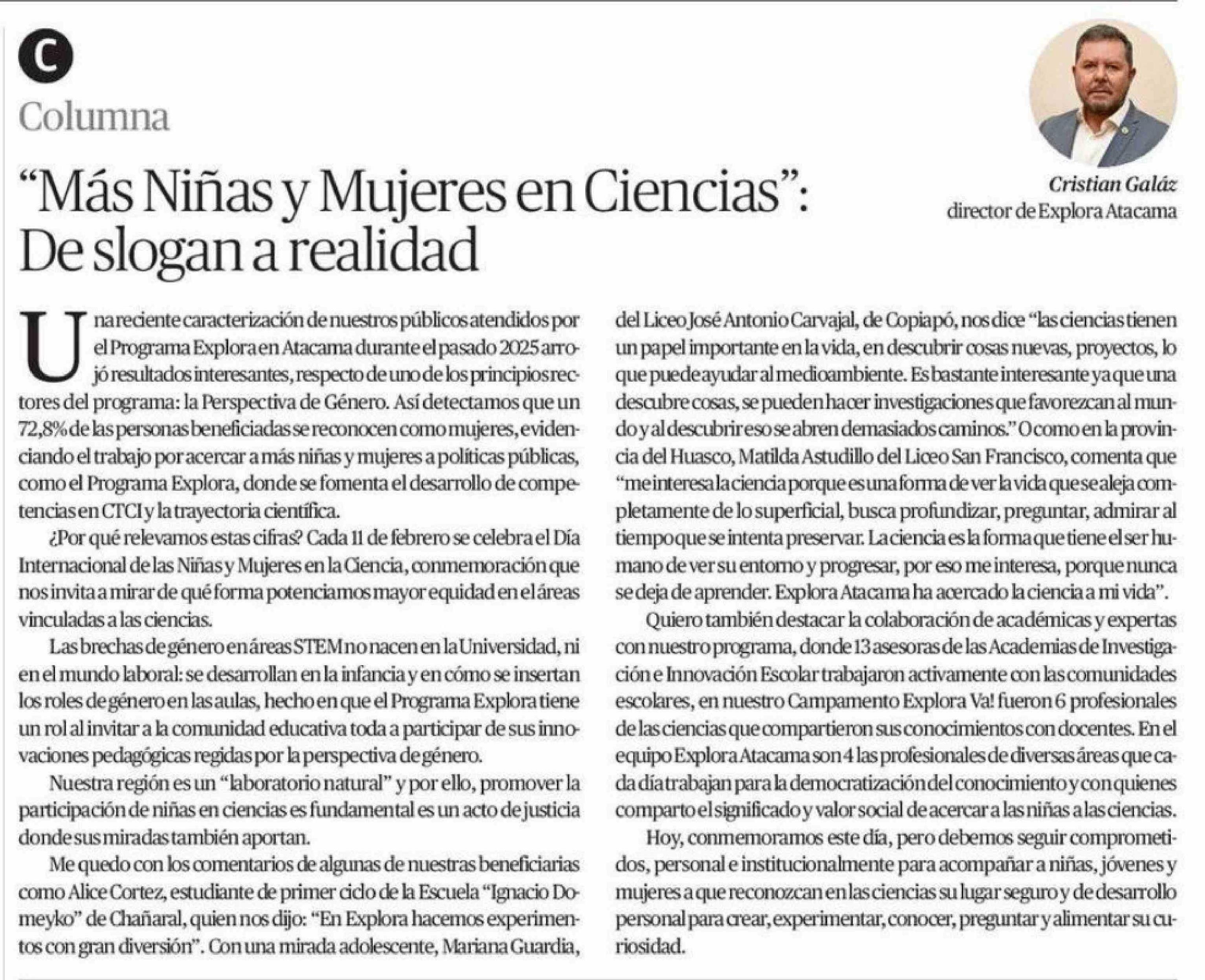 Columnas de Opinión: "Más Niñas y Mujeres en Ciencias": De slogan a realidad