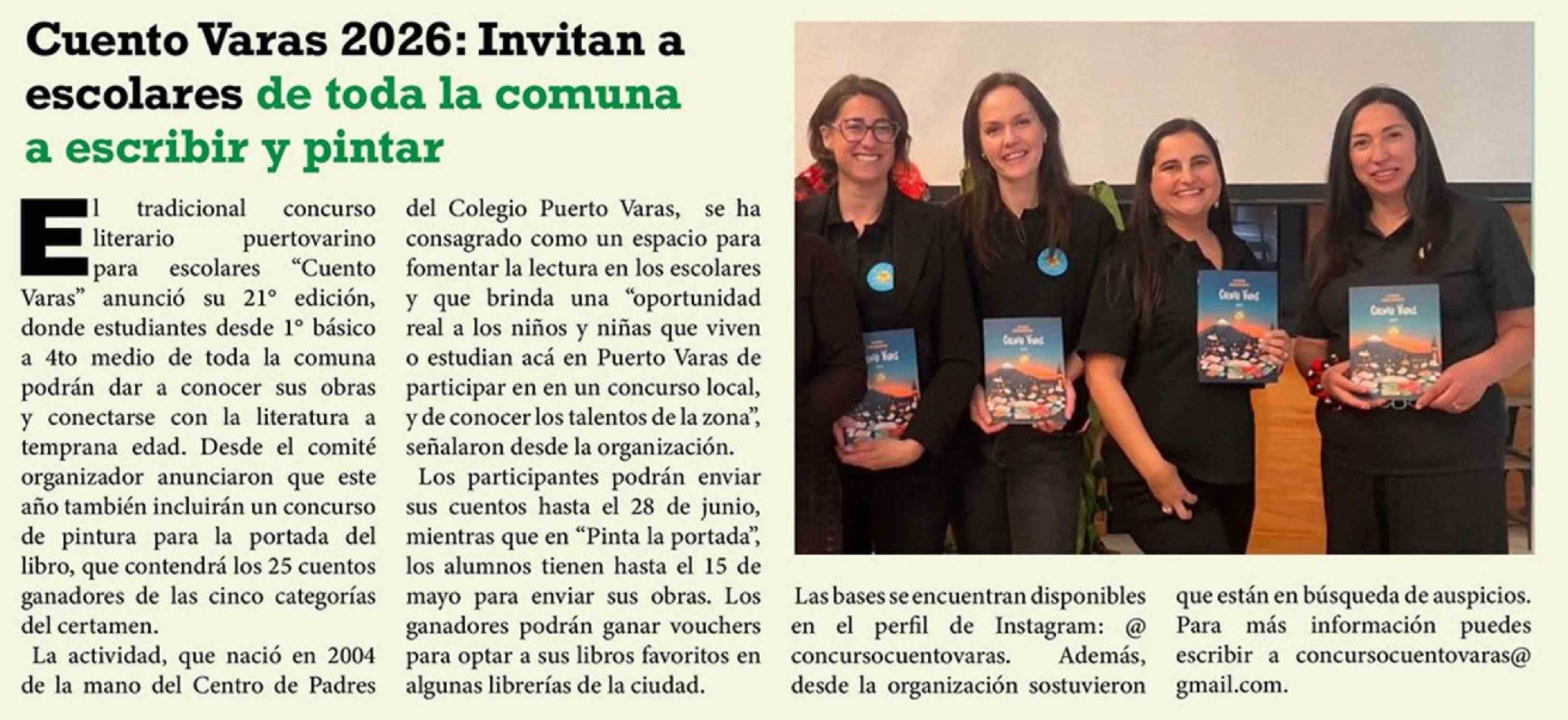 Cuento Varas 2026: Invitan a escolares de toda la comuna a escribir y pintar