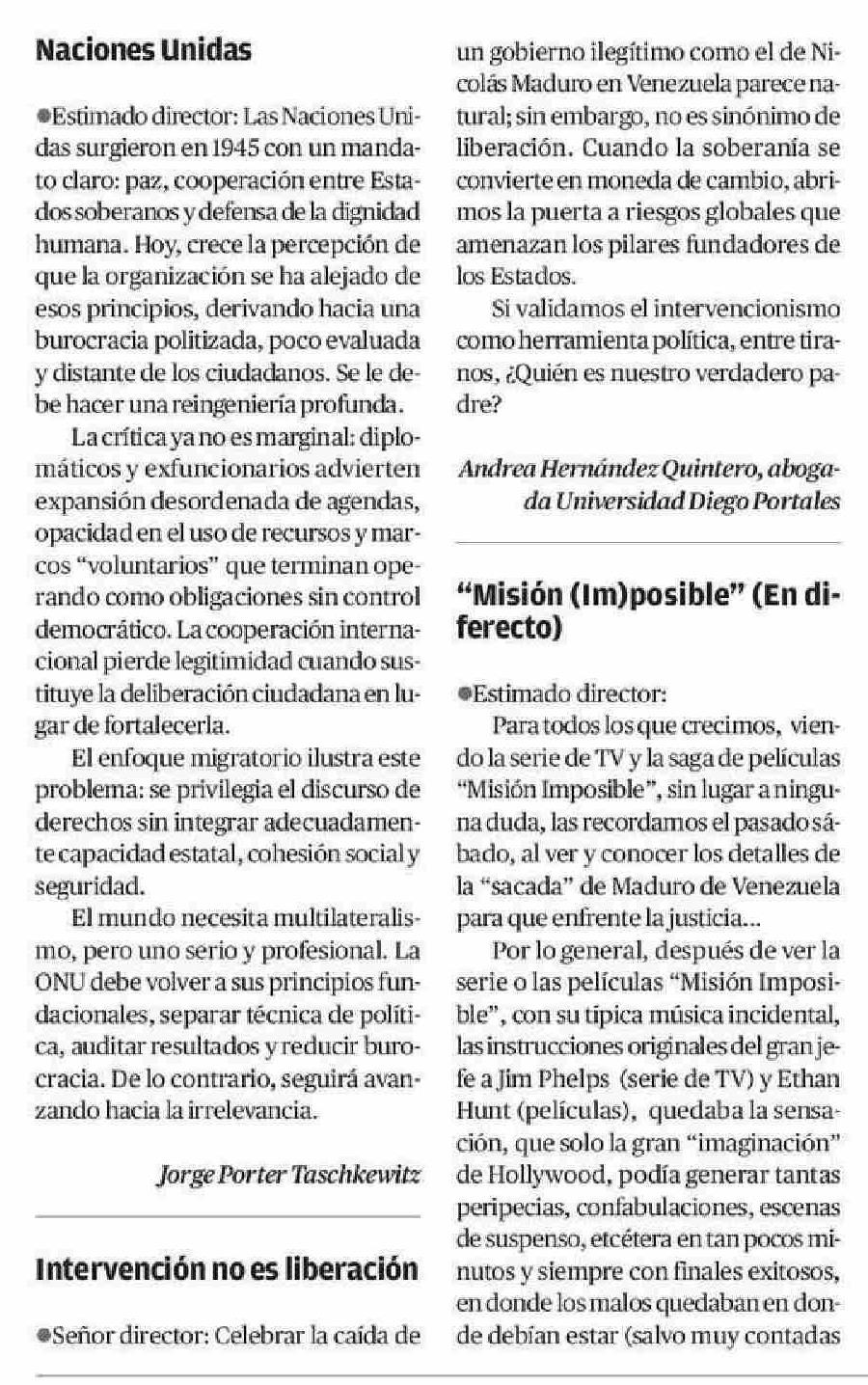 Cartas: Intervención no es liberación