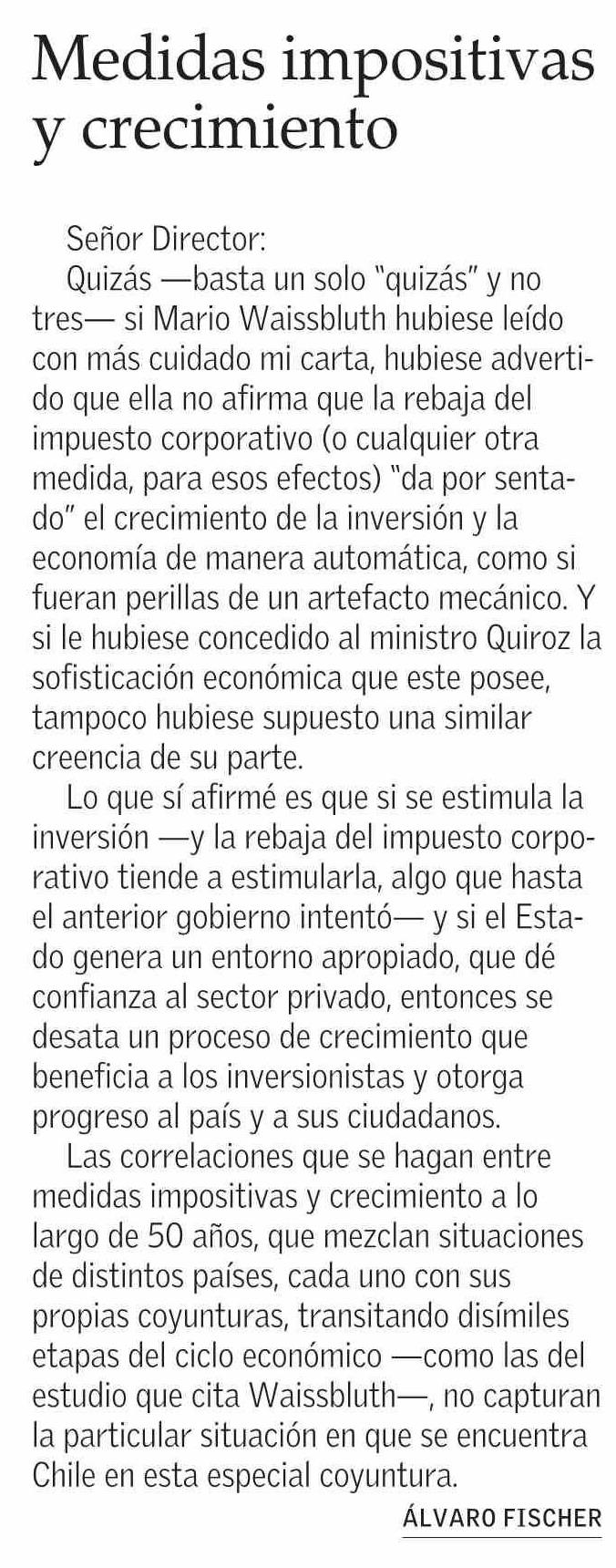 Cartas: Medidas impositivas y crecimiento