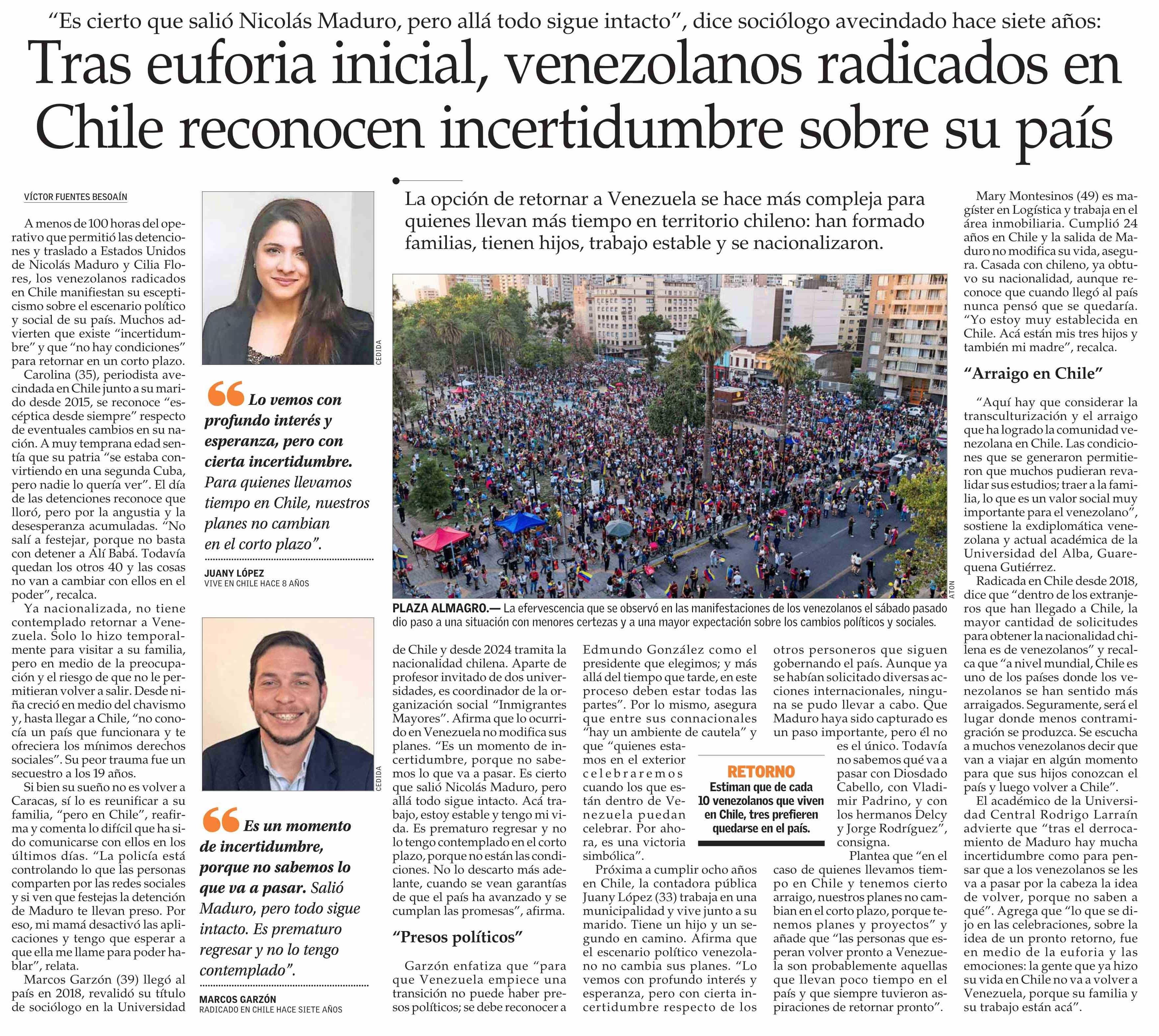 Tras euforia inicial, venezolanos radicados en Chile reconocen incertidumbre sobre su país