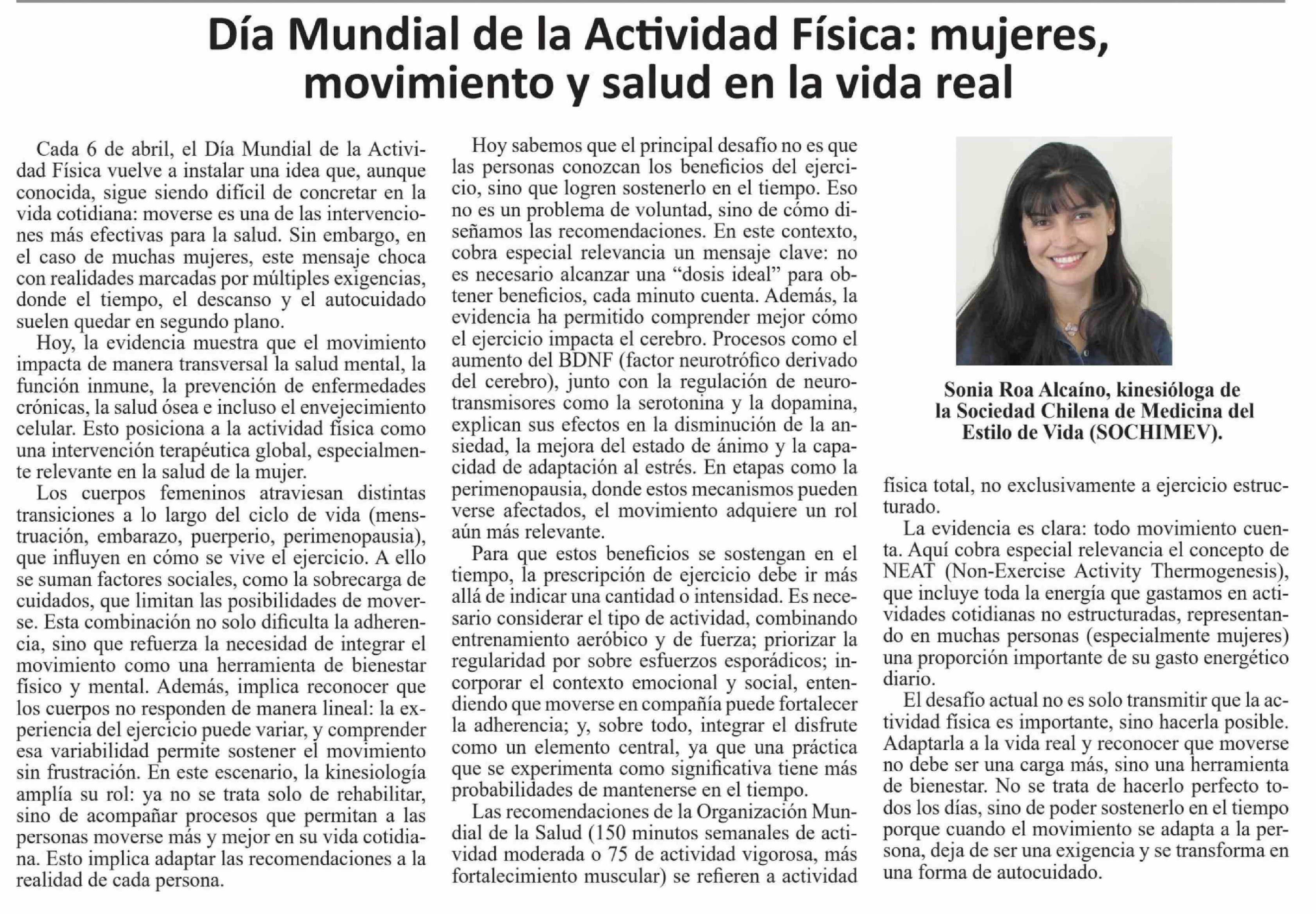 Título: Columnas de Opinión: Día Mundial de la Actividad Física: mujeres, movimiento y salud en la vida real