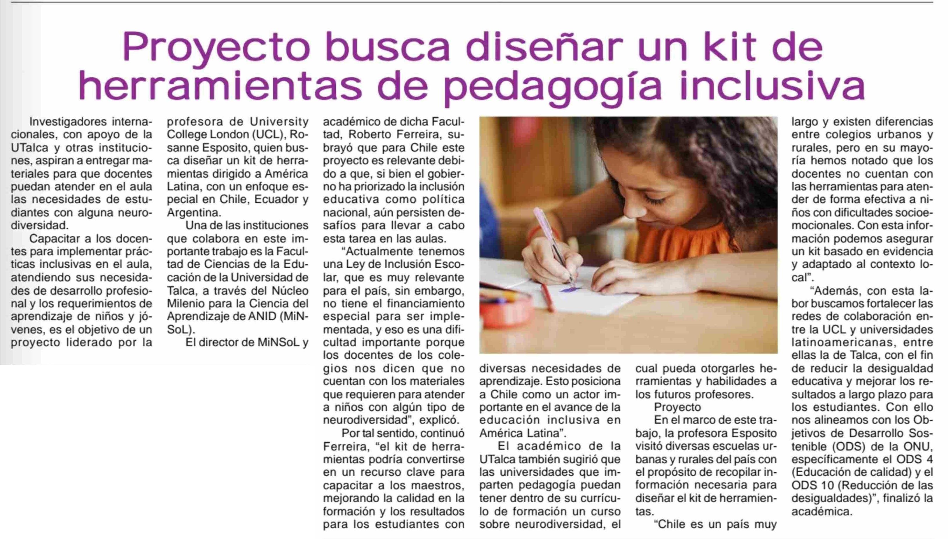 Proyecto busca diseñar un kit de herramientas de pedagogía inclusiva