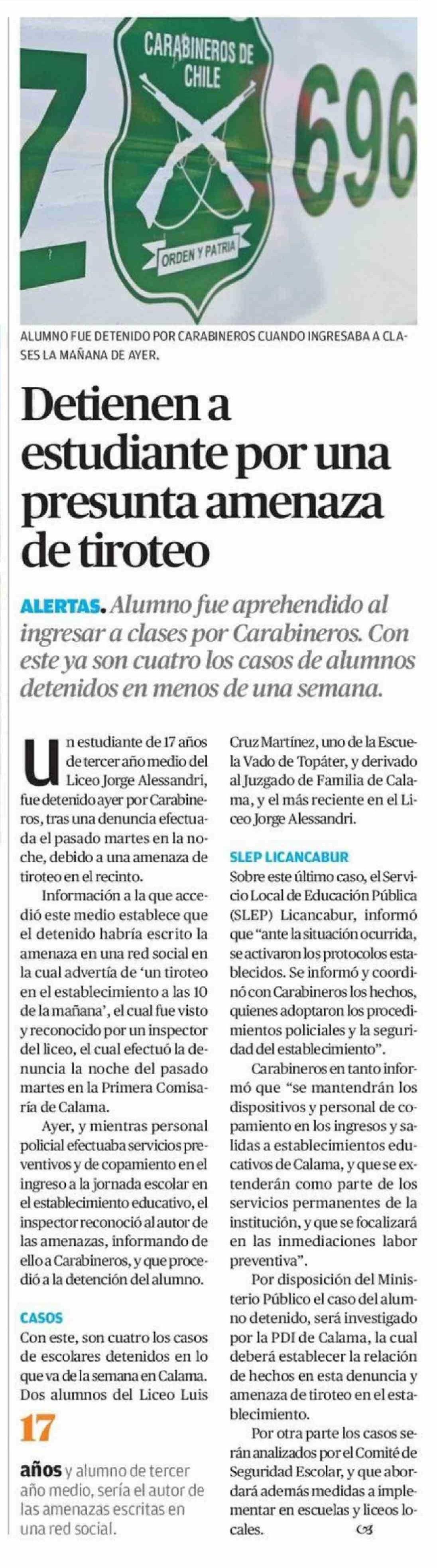 Detienen a estudiante por una presunta amenaza de tiroteo