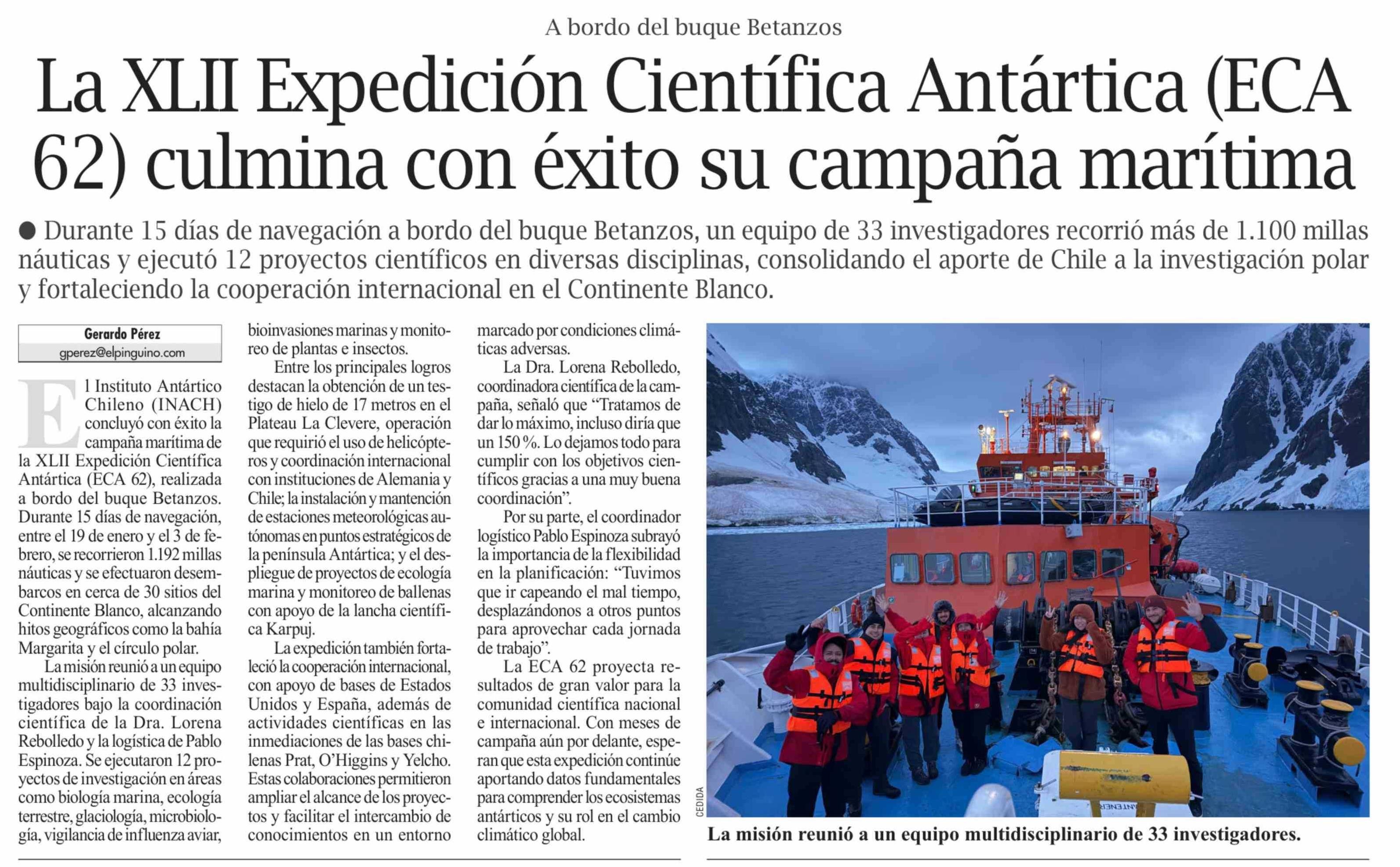 La XLII Expedición Científica Antártica (ECA 62) culmina con éxito su campaña marítima