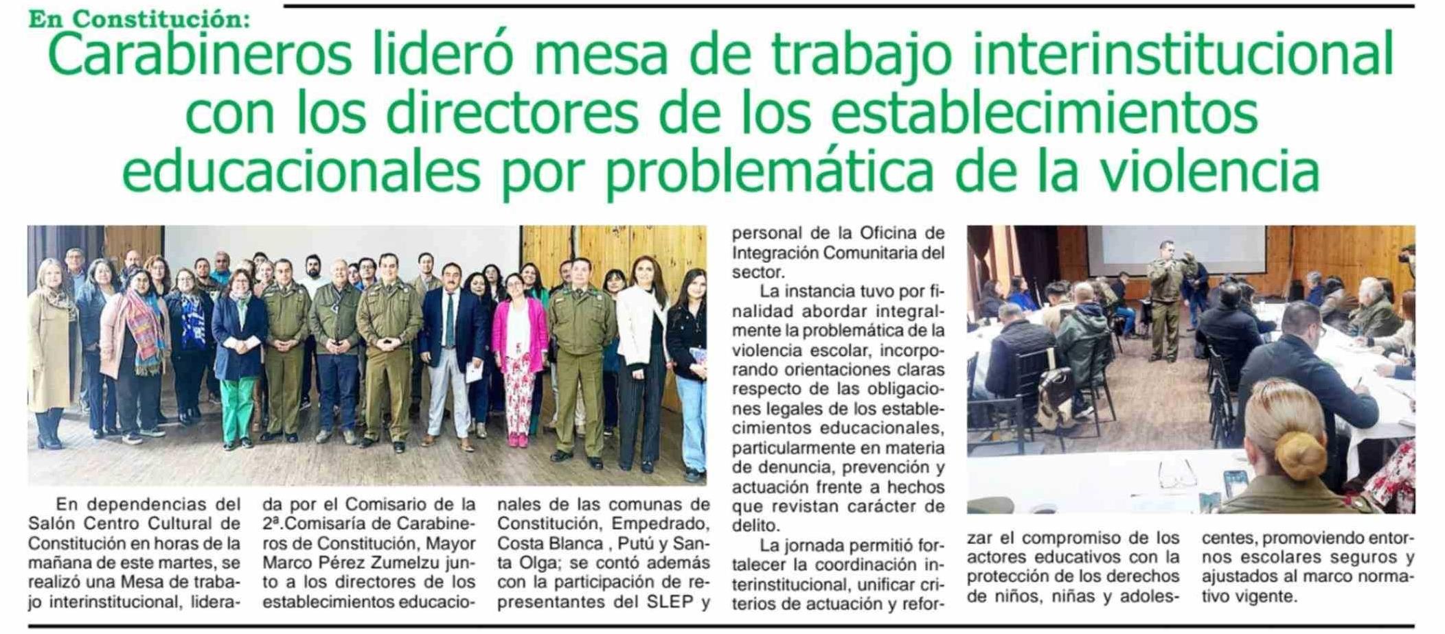Carabineros lideró mesa de trabajo interinstitucional con los directores de los establecimientos educacionales por problemática de la violencia