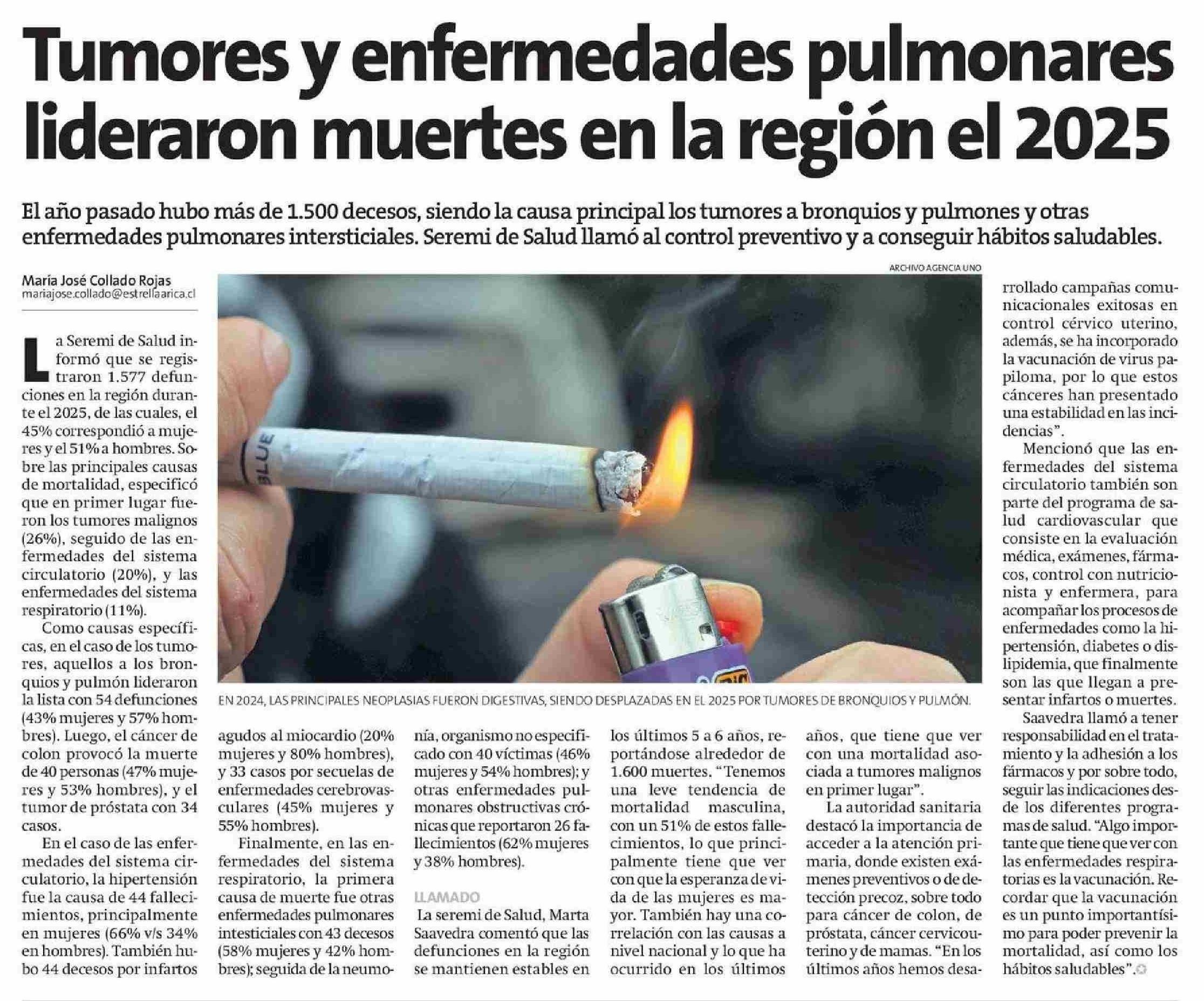 Título: Tumores y enfermedades pulmonares lideraron muertes en la región el 2025