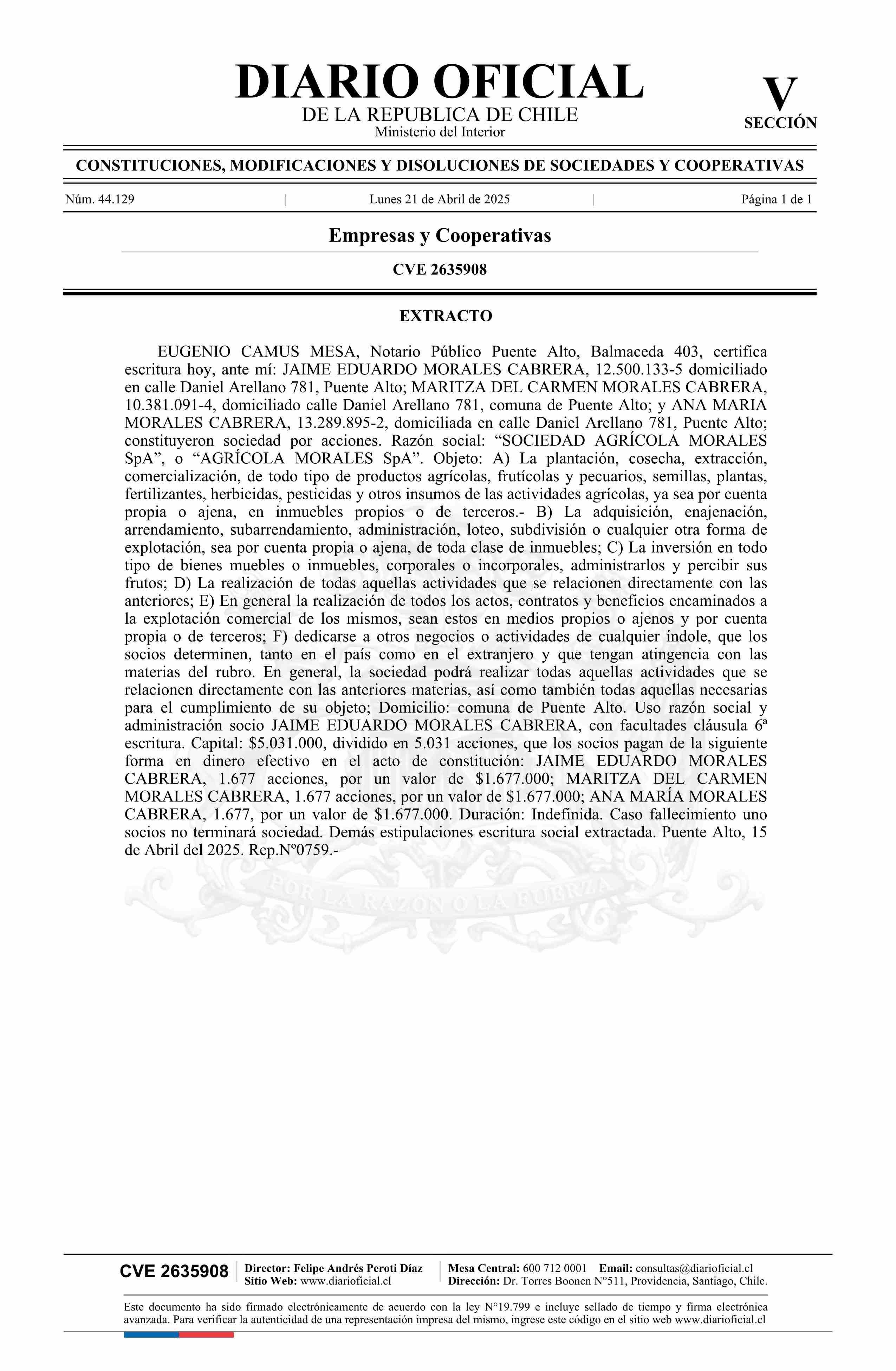 SOCIEDAD AGRÍCOLA MORALES SpA