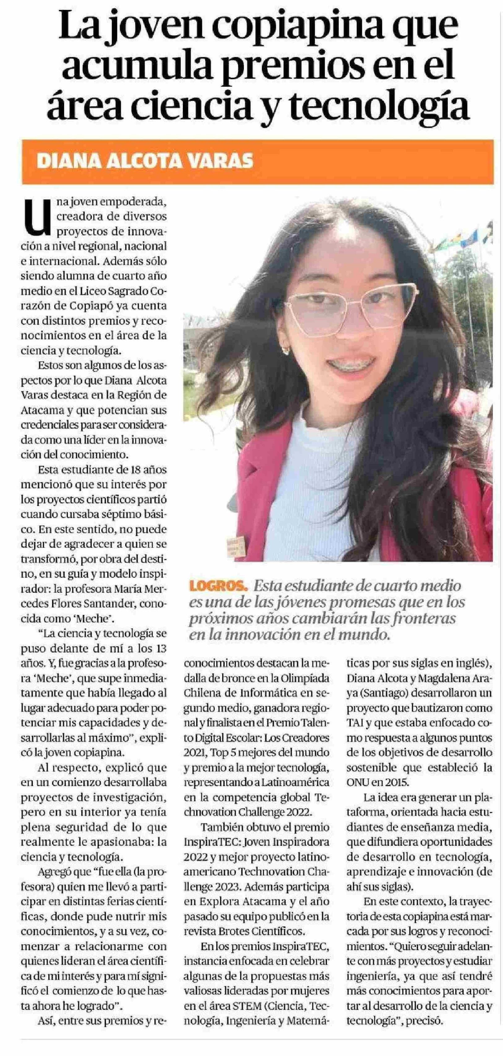 La joven copiapina que acumula premios en el área ciencia y tecnología