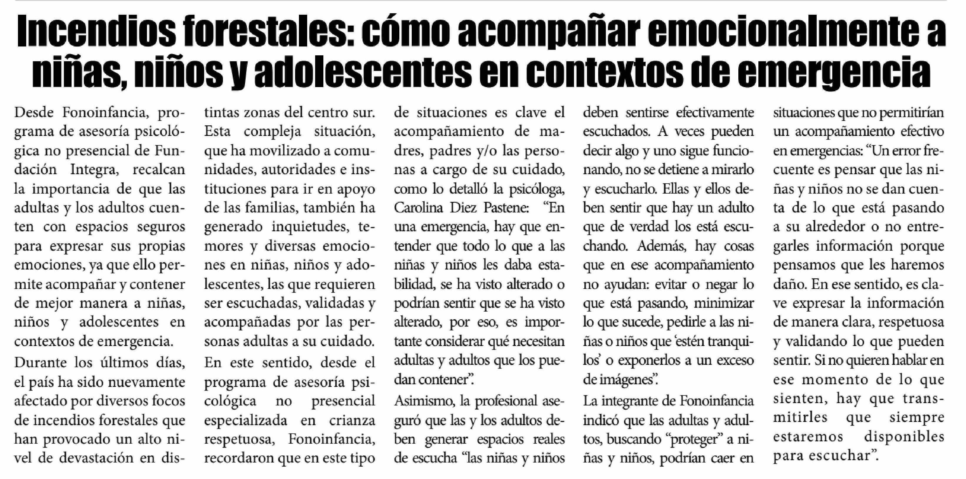 Incendios forestales: cómo acompañar emocionalmente a niñas, niños y adolescentes en contextos de emergencia