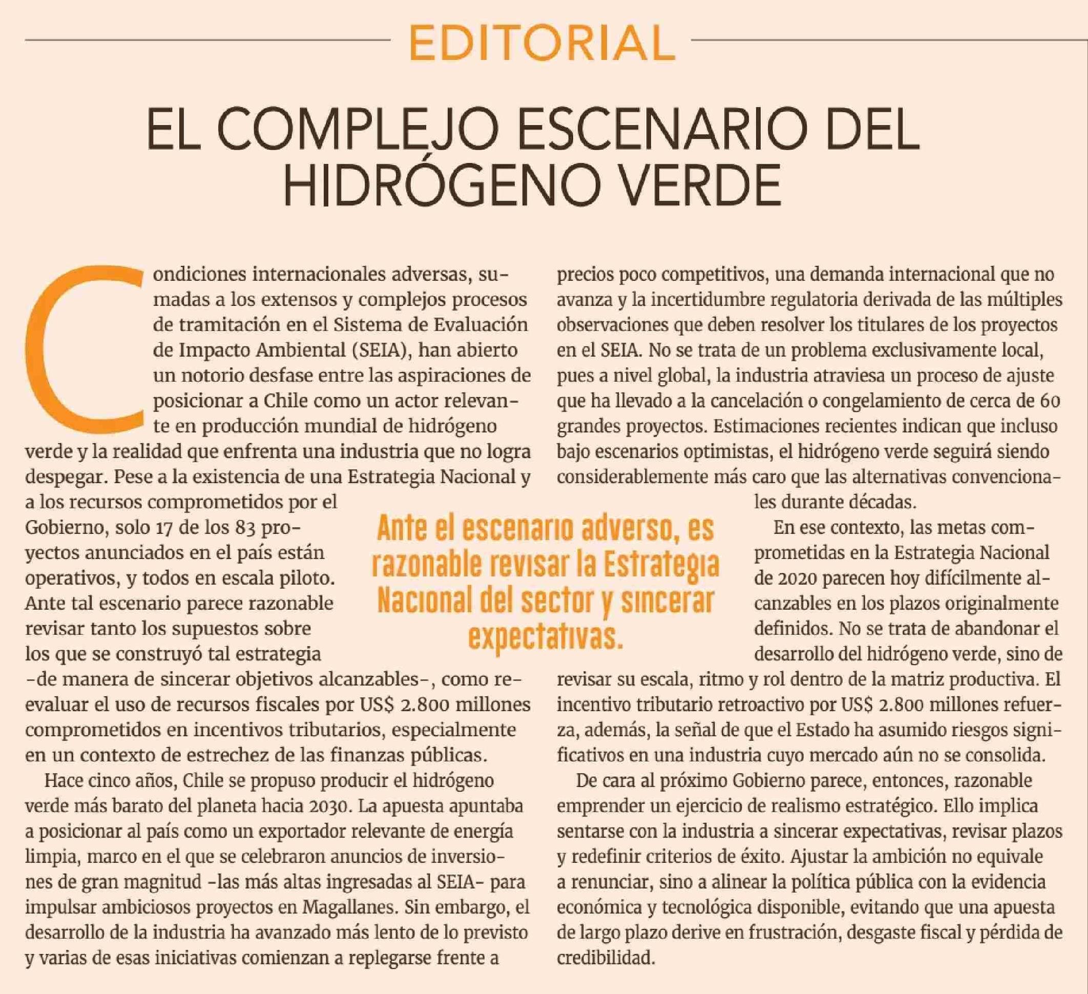 Editorial: EL COMPLEJO ESCENARIO DEL HIDRÓGENO VERDE