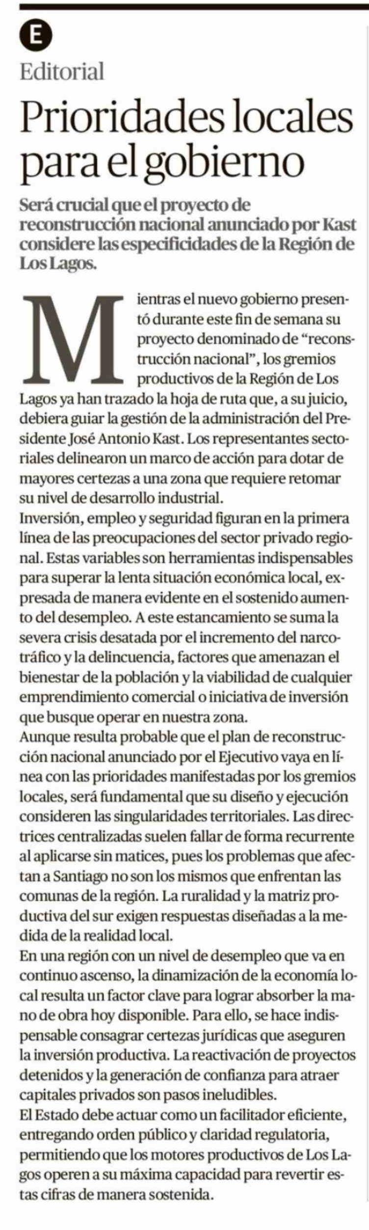 Editorial: Prioridades locales para el gobierno