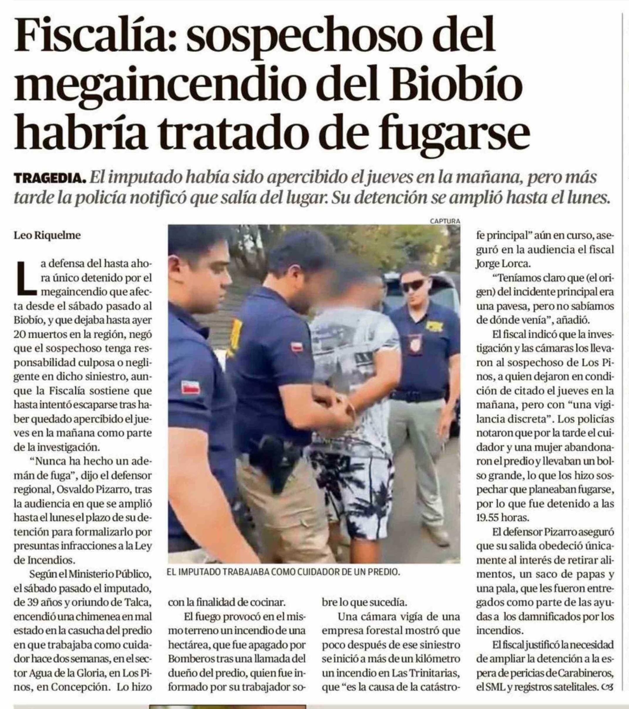 Fiscalía: sospechoso del megaincendio del Biobío habría tratado de fugarse
