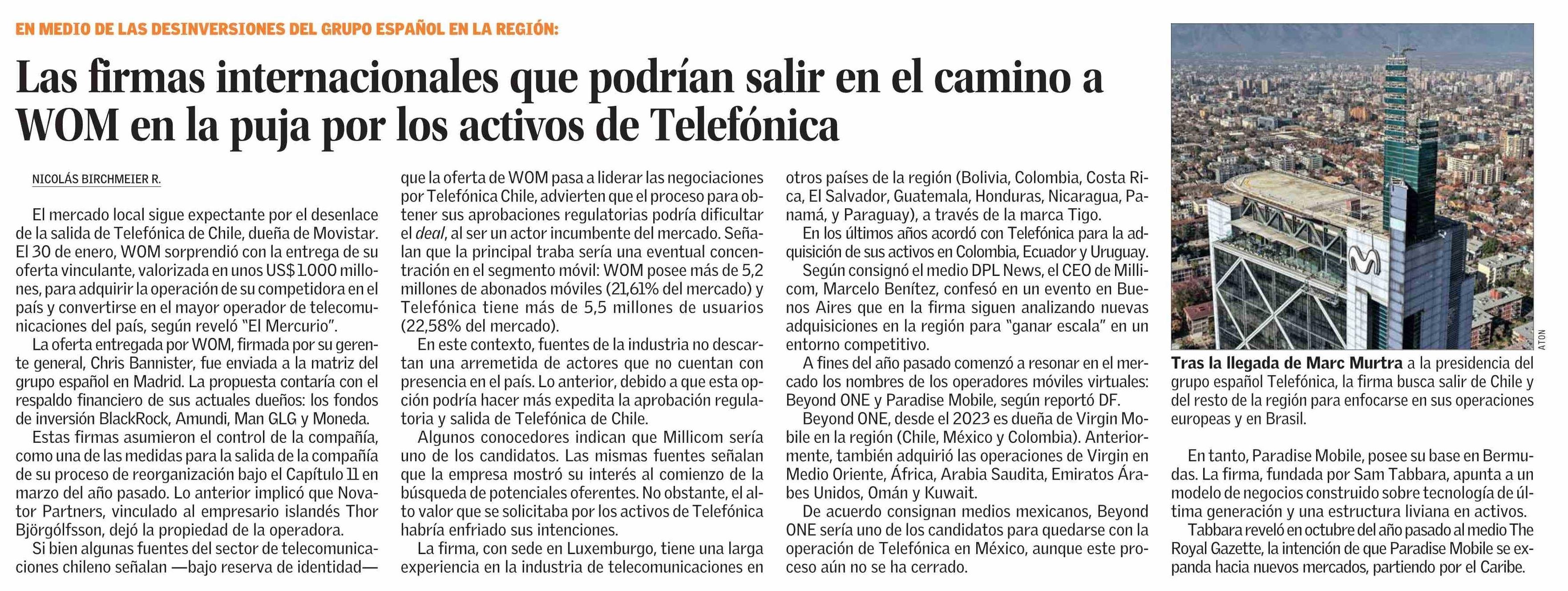 Las firmas internacionales que podrían salir en el camino a WOM en la puja por los activos de Telefónica