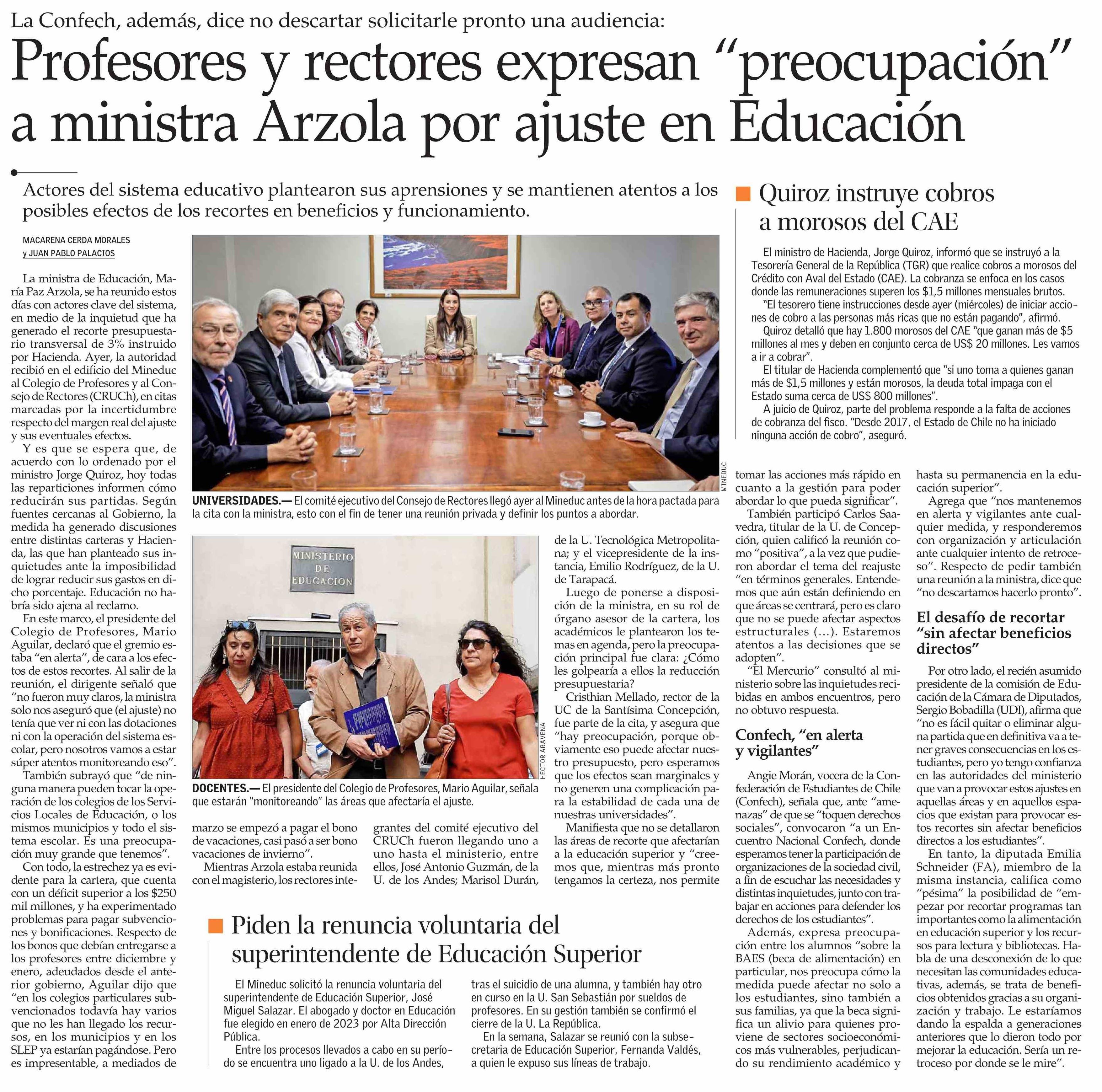Profesores y rectores expresan “preocupación” a ministra Arzola por ajuste en Educación