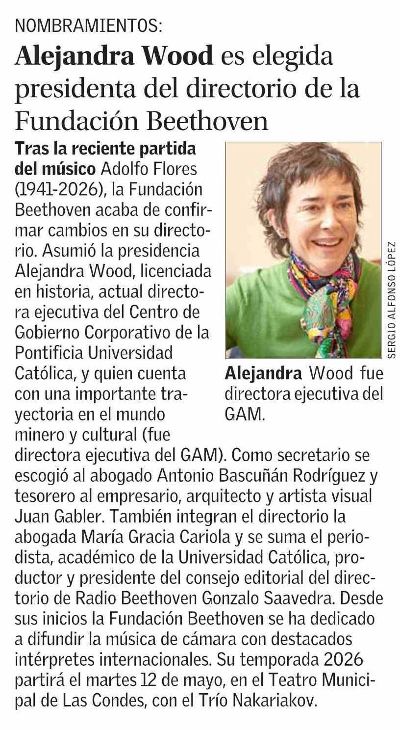 Alejandra Wood es elegida presidenta del directorio de la Fundación Beethoven