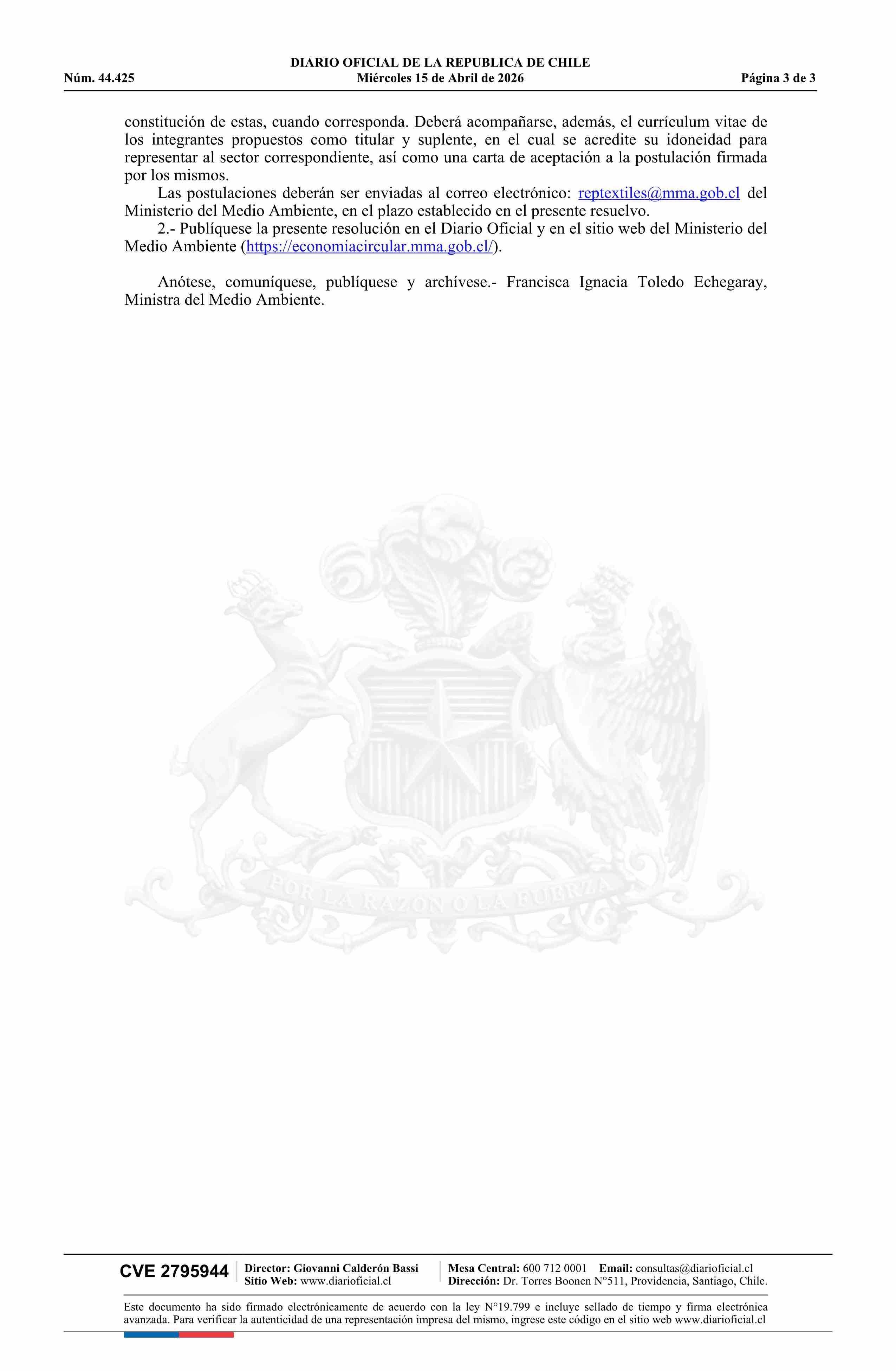 Fuente: Diario Oficial Edición Electrónica (Diario Oficial de Chile - 1 Normas Generales) Página(s): 13-15