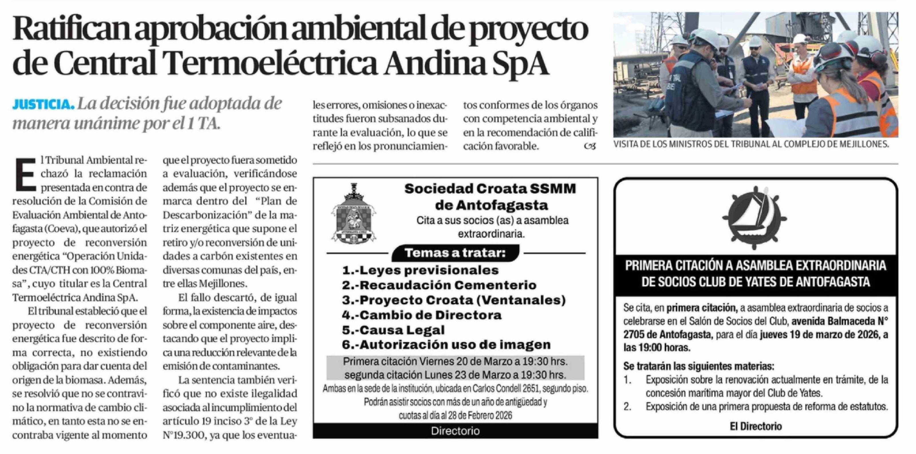 Ratifican aprobación ambiental de proyecto de Central Termoeléctrica Andina SpA