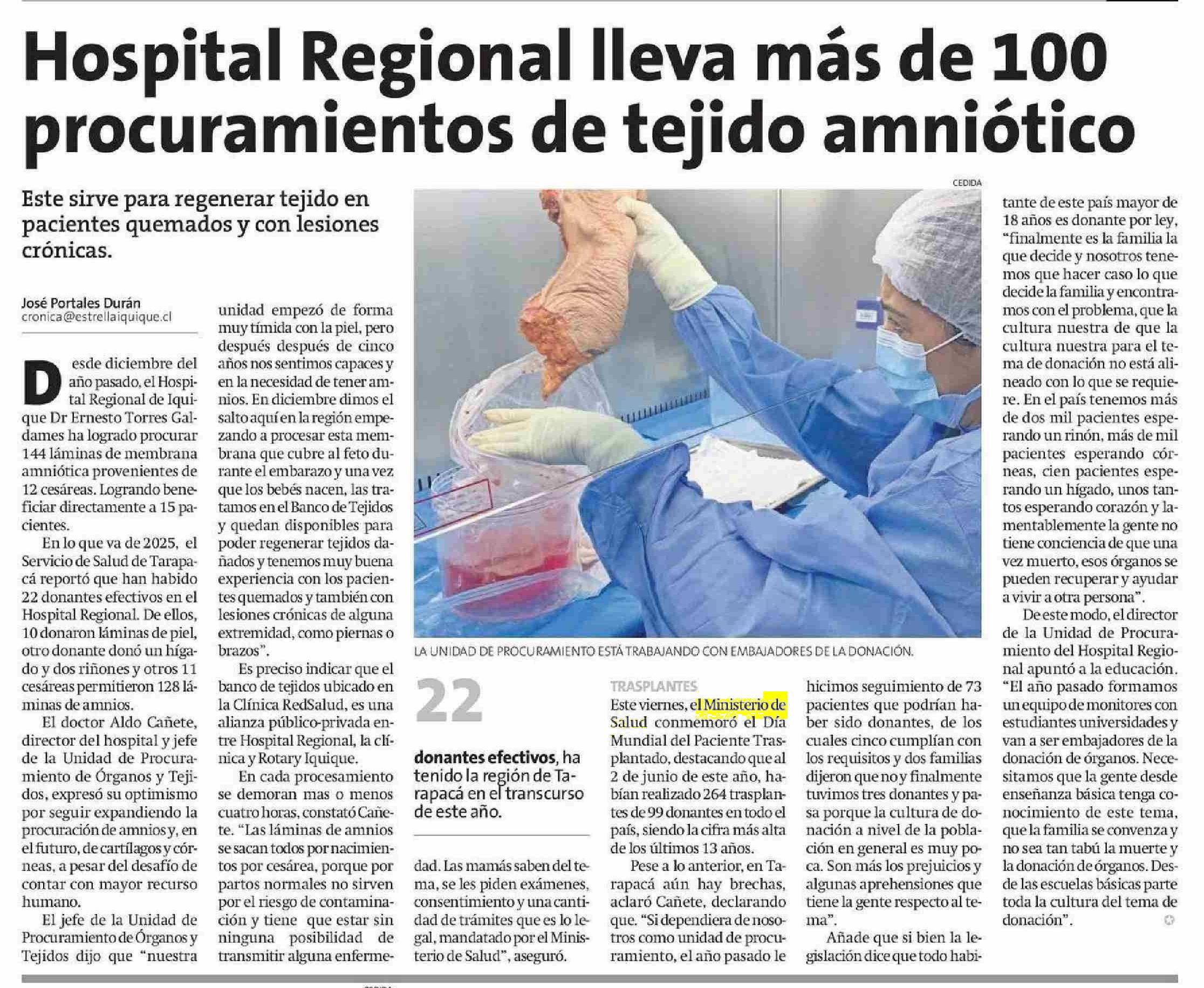 Hospital Regional lleva más de 100 procuramientos de tejido amniótico