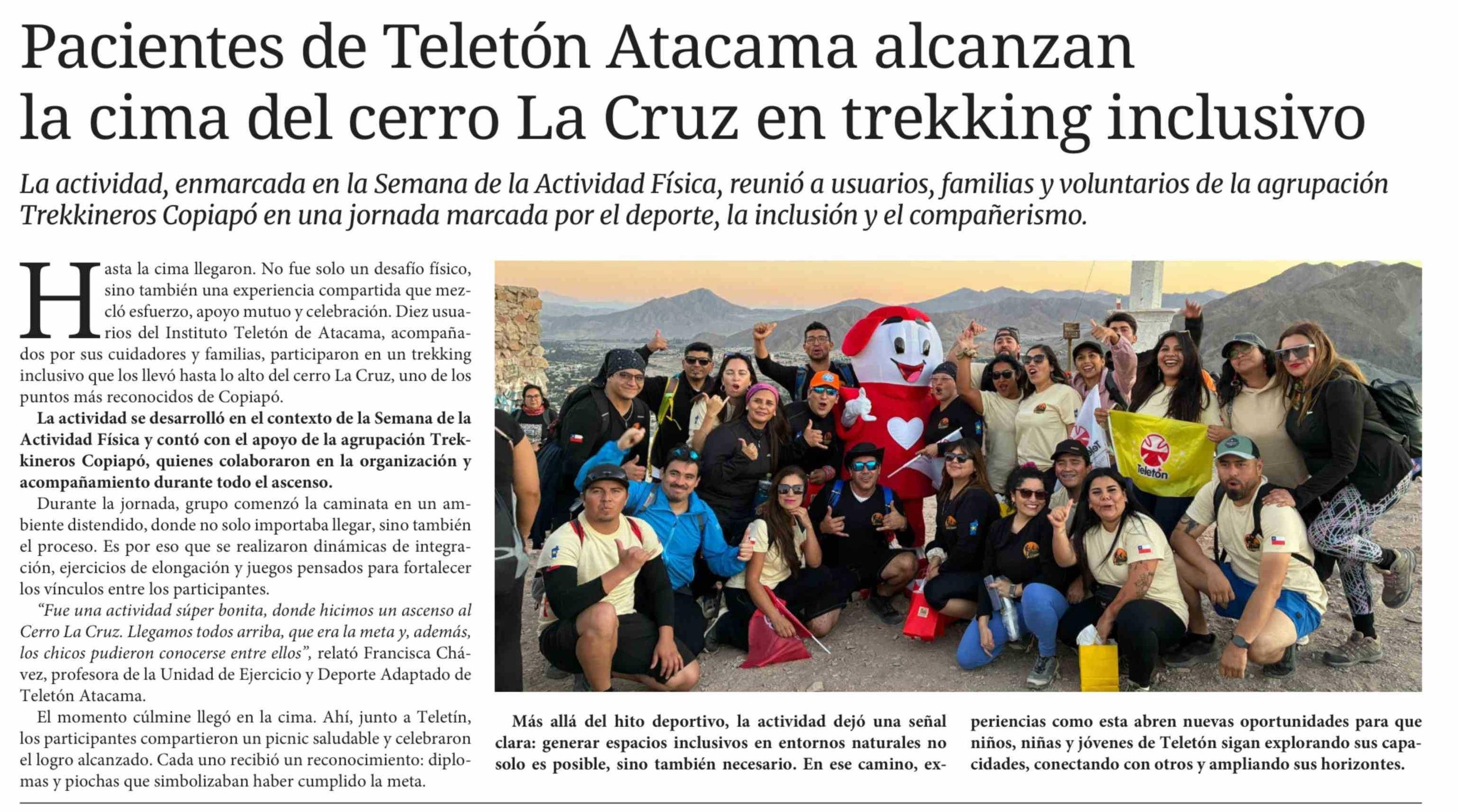 Pacientes de Teletón Atacama alcanzan la cima del cerro La Cruz en trekking inclusivo