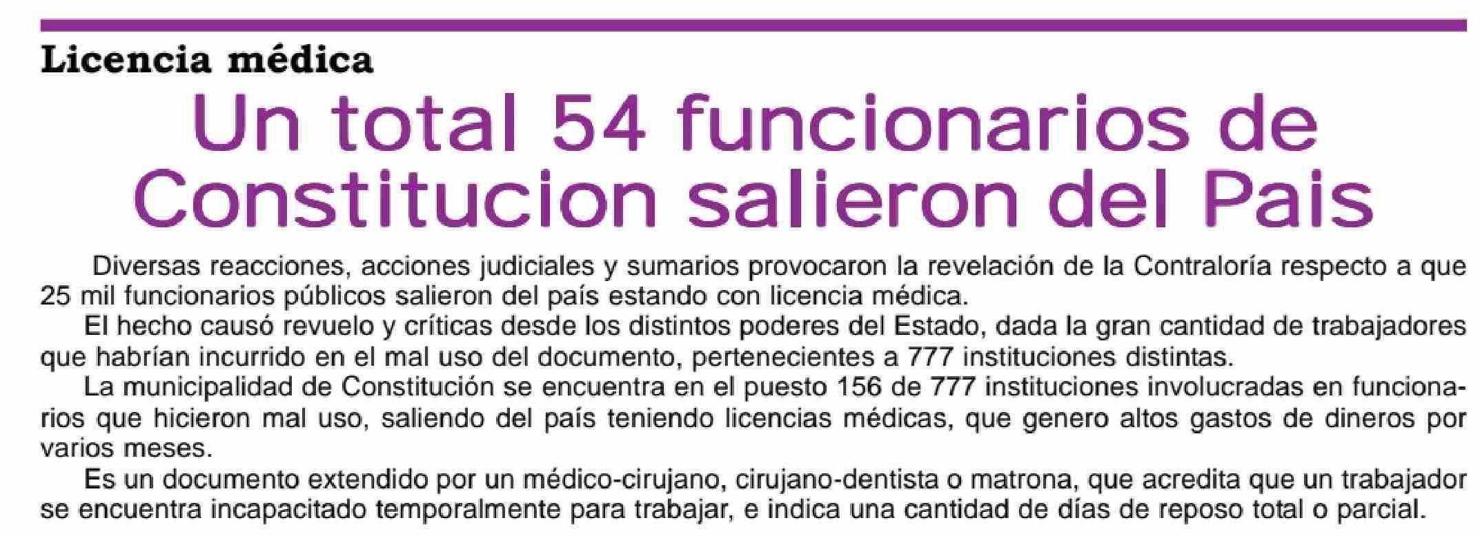 Un total 54 funcionarios de Constitucion salieron del Pais