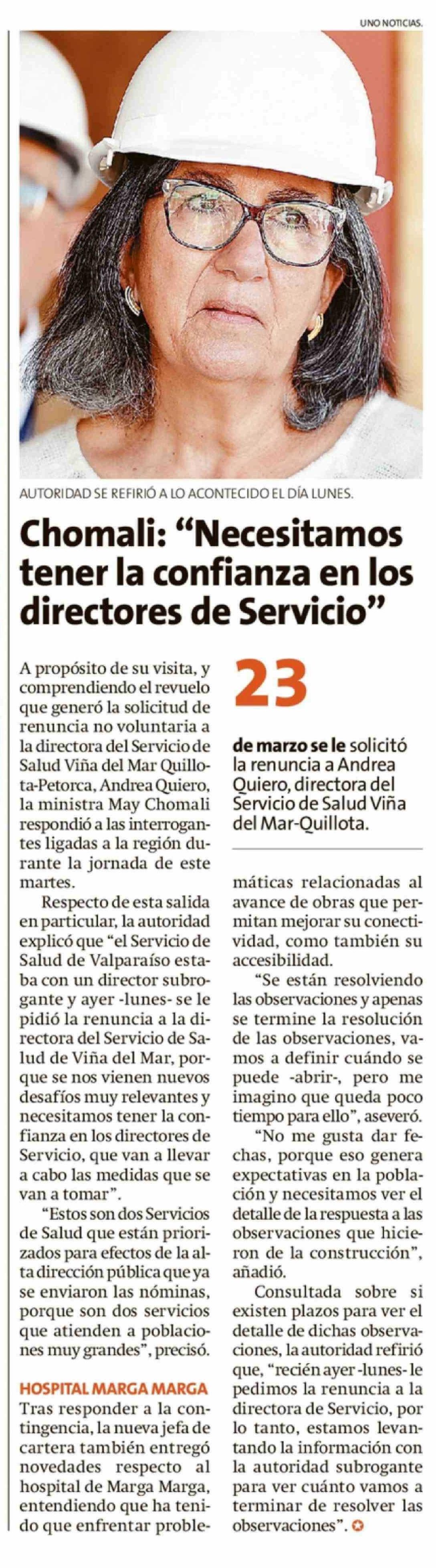 Chomali: "Necesitamos tener la confianza en los directores de Servicio"