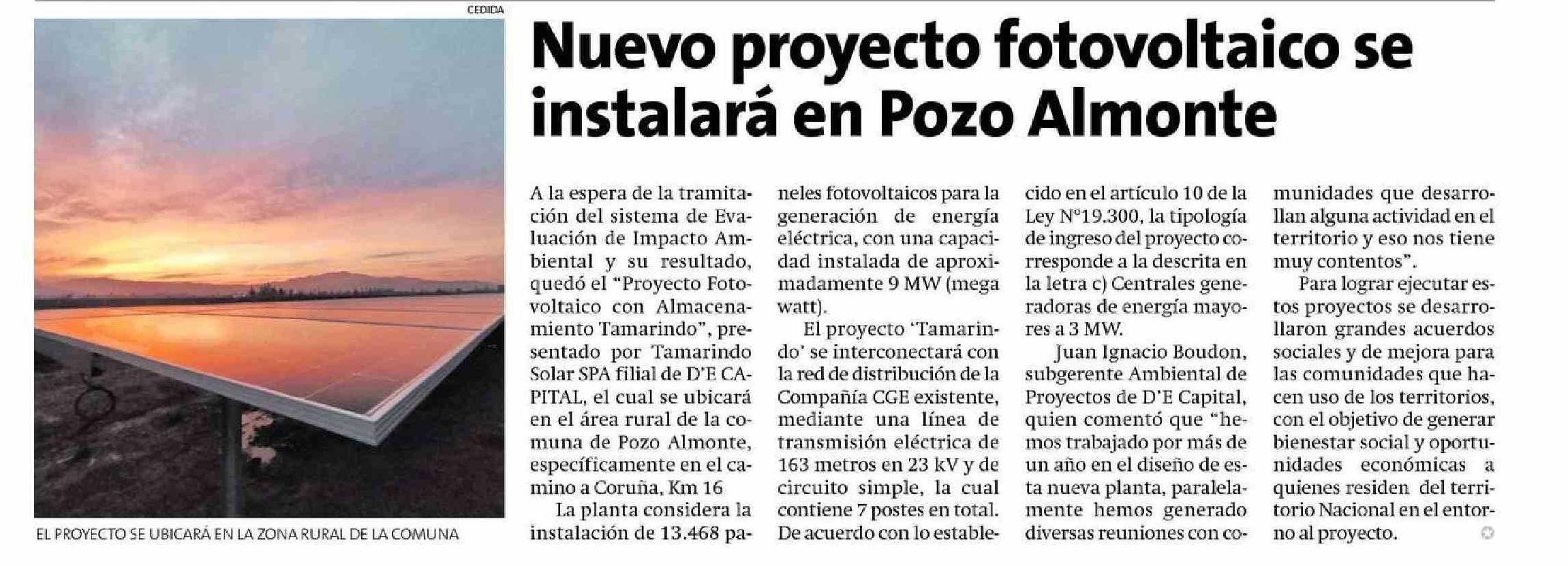 Nuevo proyecto fotovoltaico se instalará en Pozo Almonte
