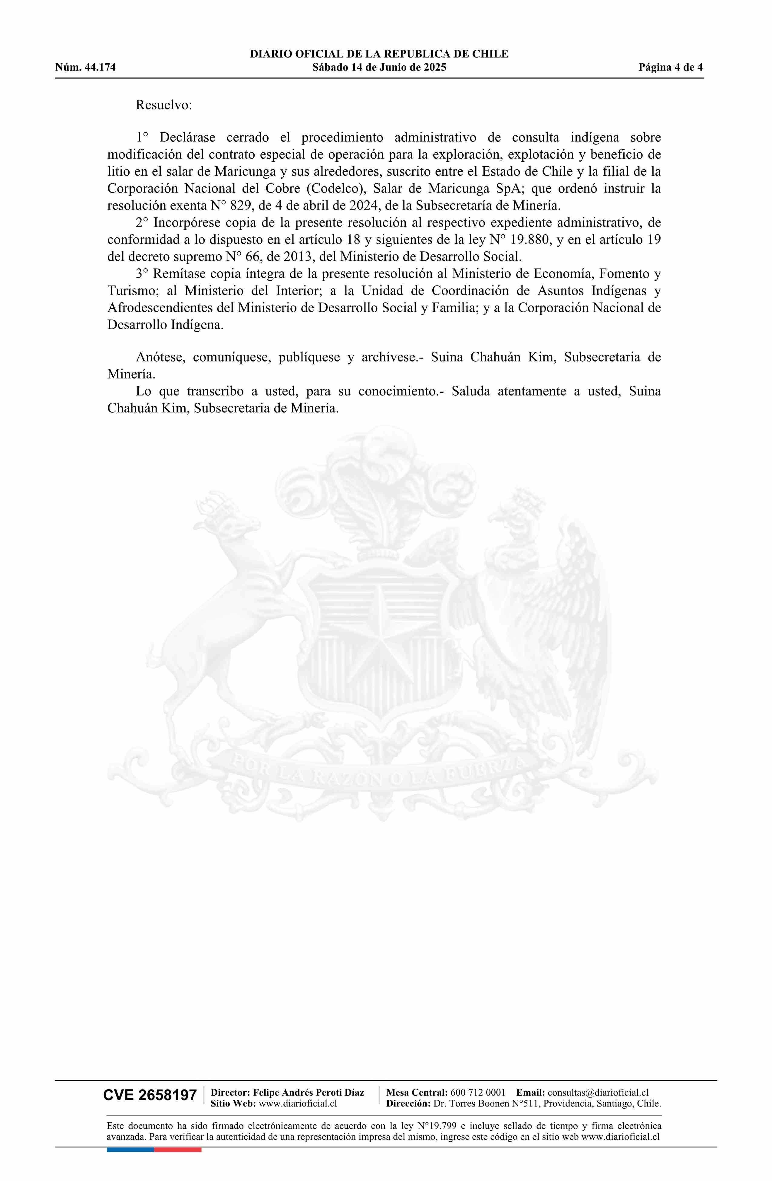 | Título: | Resolución exenta número 1.170, de 2025.- Declara el cierre del procedimiento administrativo de consulta indígena ordenado instruir por la resolución N° 829 exenta, de 2024 |