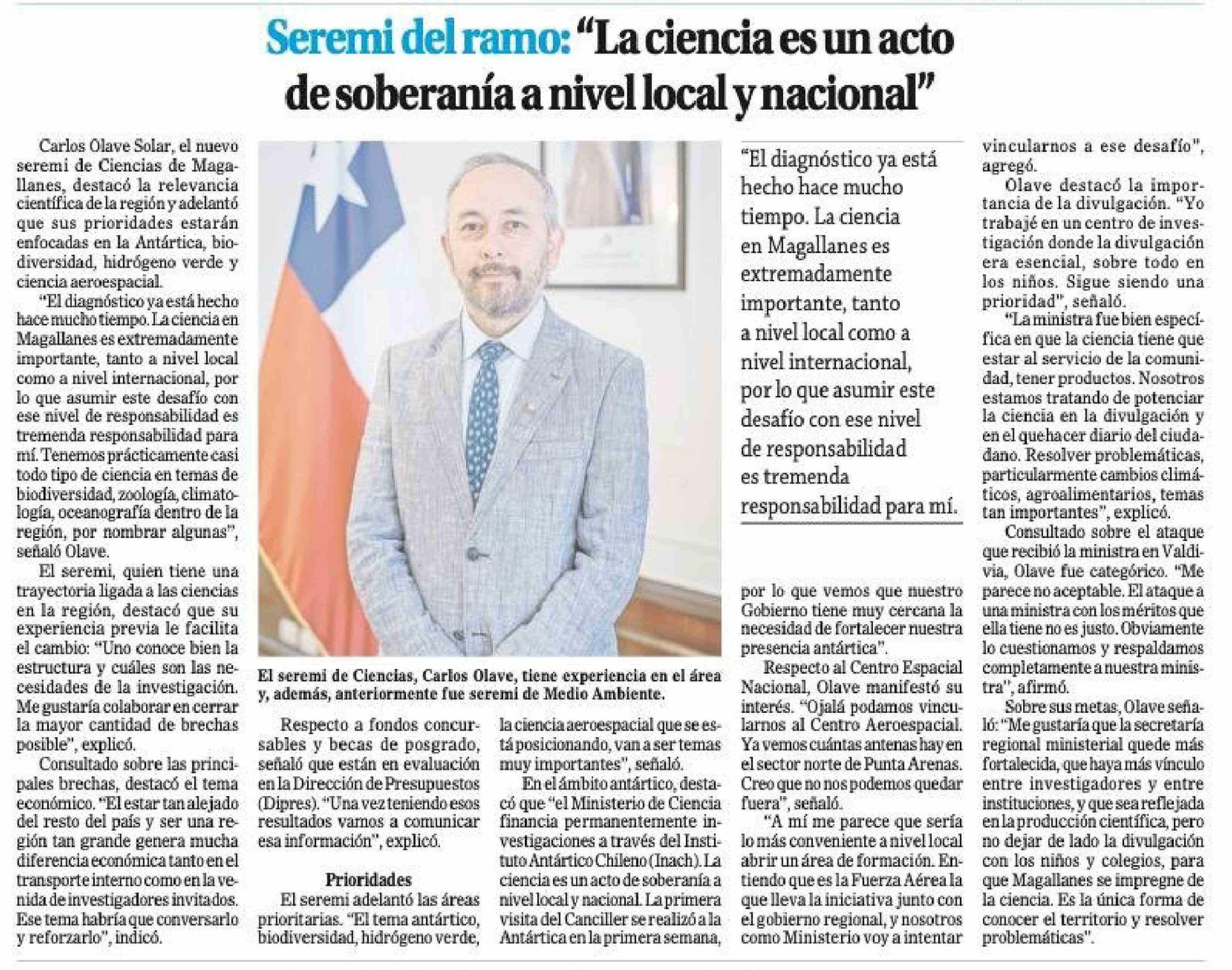 Título: Seremi del ramo: "La ciencia es un acto de soberanía a nivel local y nacional"