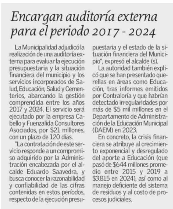 Encargan auditoría externa para el periodo 2017 - 2024