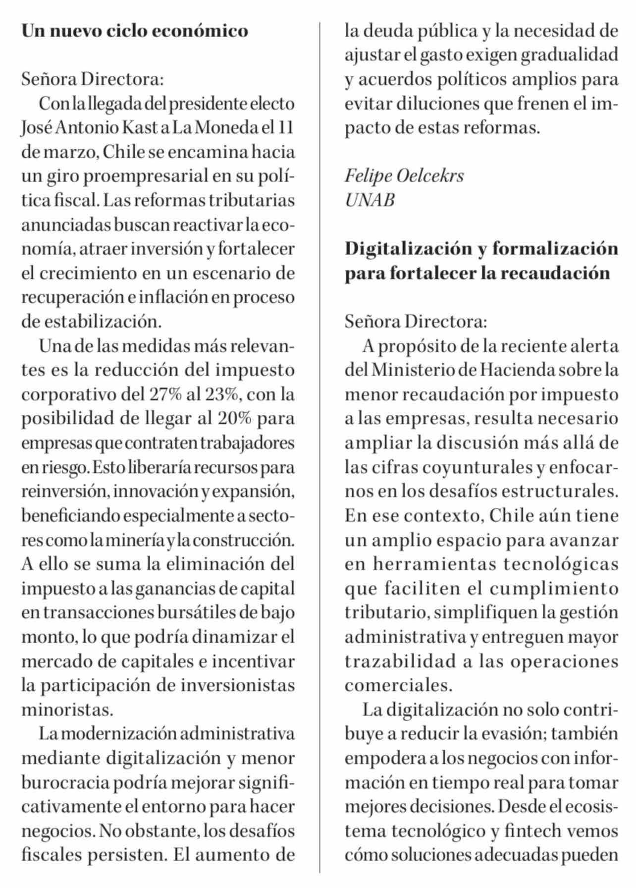 Cartas: Un nuevo ciclo económico