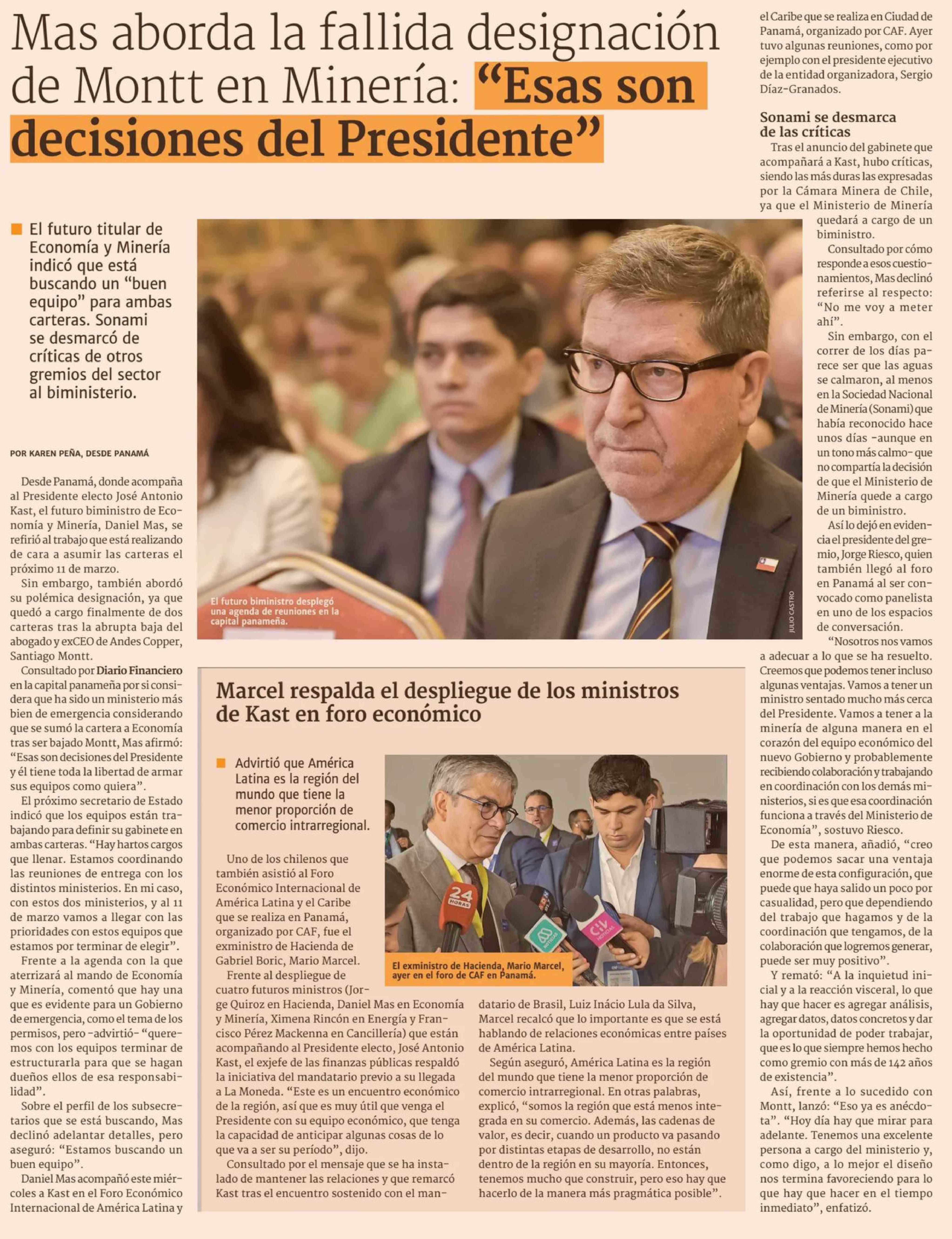 Mas aborda la fallida designación de Montt en Minería: "Esas son decisiones del Presidente"