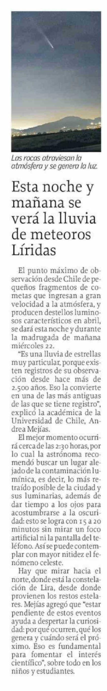 Esta noche y mañana se verá la lluvia de meteoros Líridas
