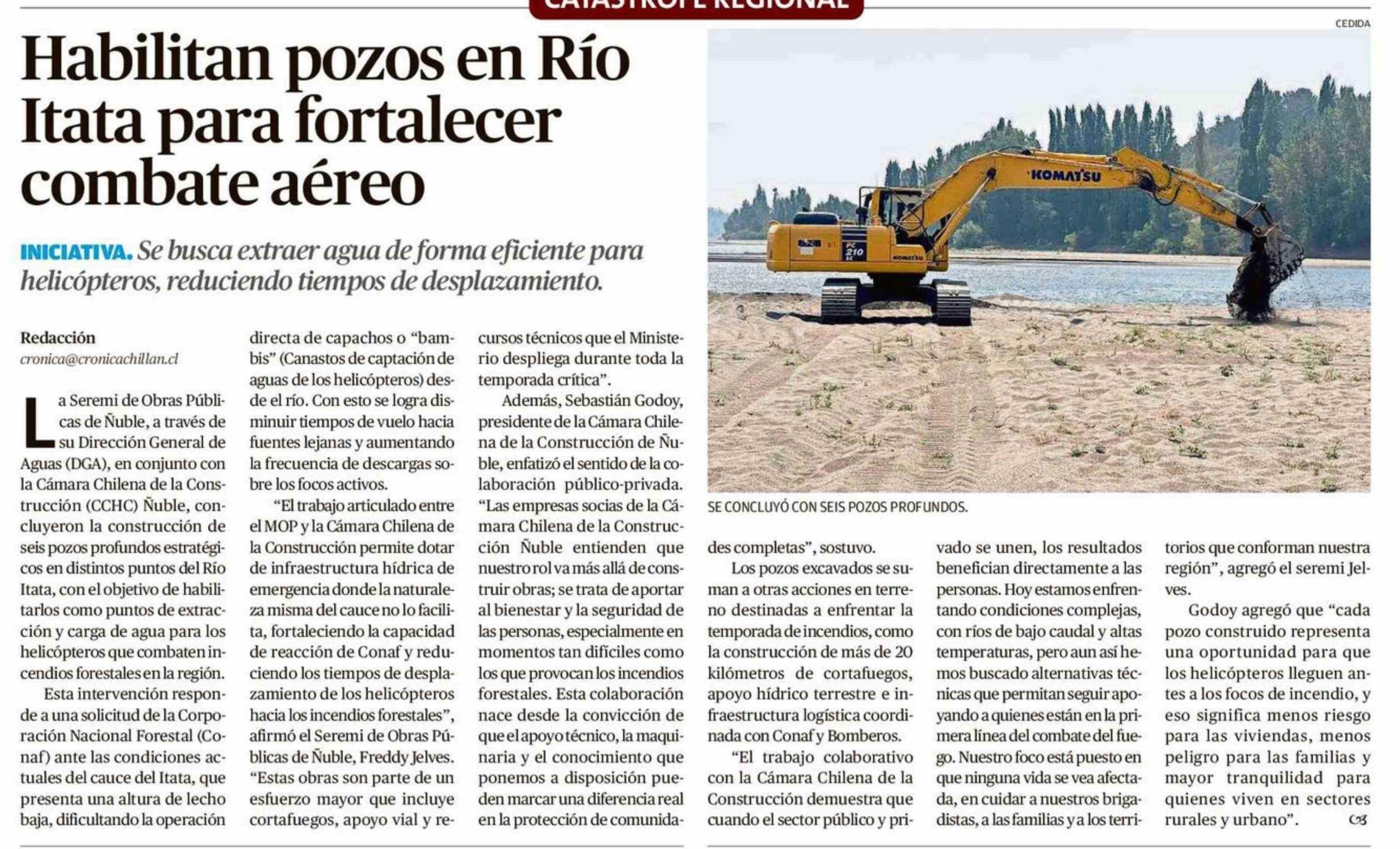 Habilitan pozos en Río Itata para fortalecer combate aéreo