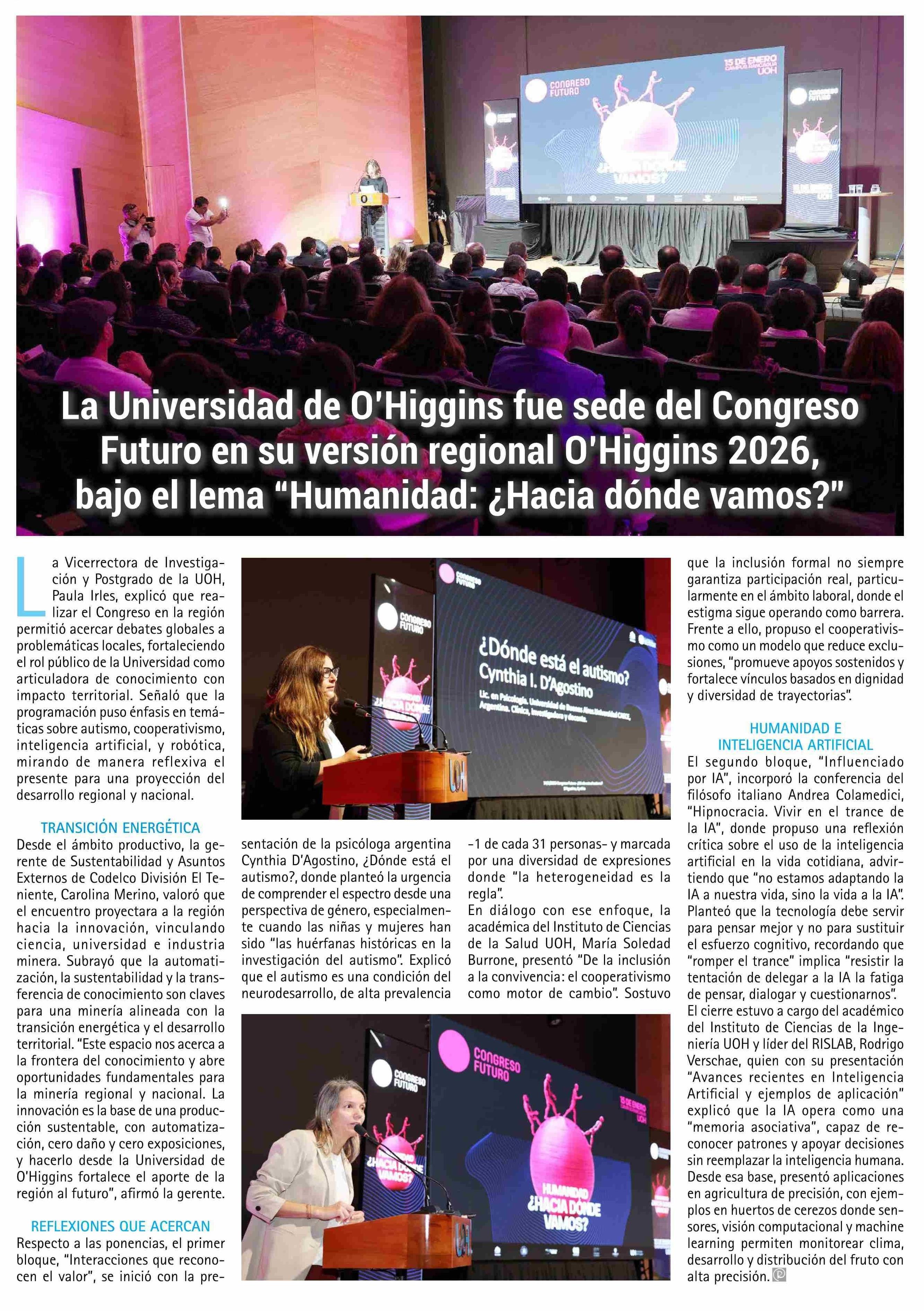 | Título: | La Universidad de O'Higgins fue sede del Congreso Futuro en su versión regional O'Higgins 2026, bajo el lema "Humanidad: ¿ Hacia donde vamos?" |