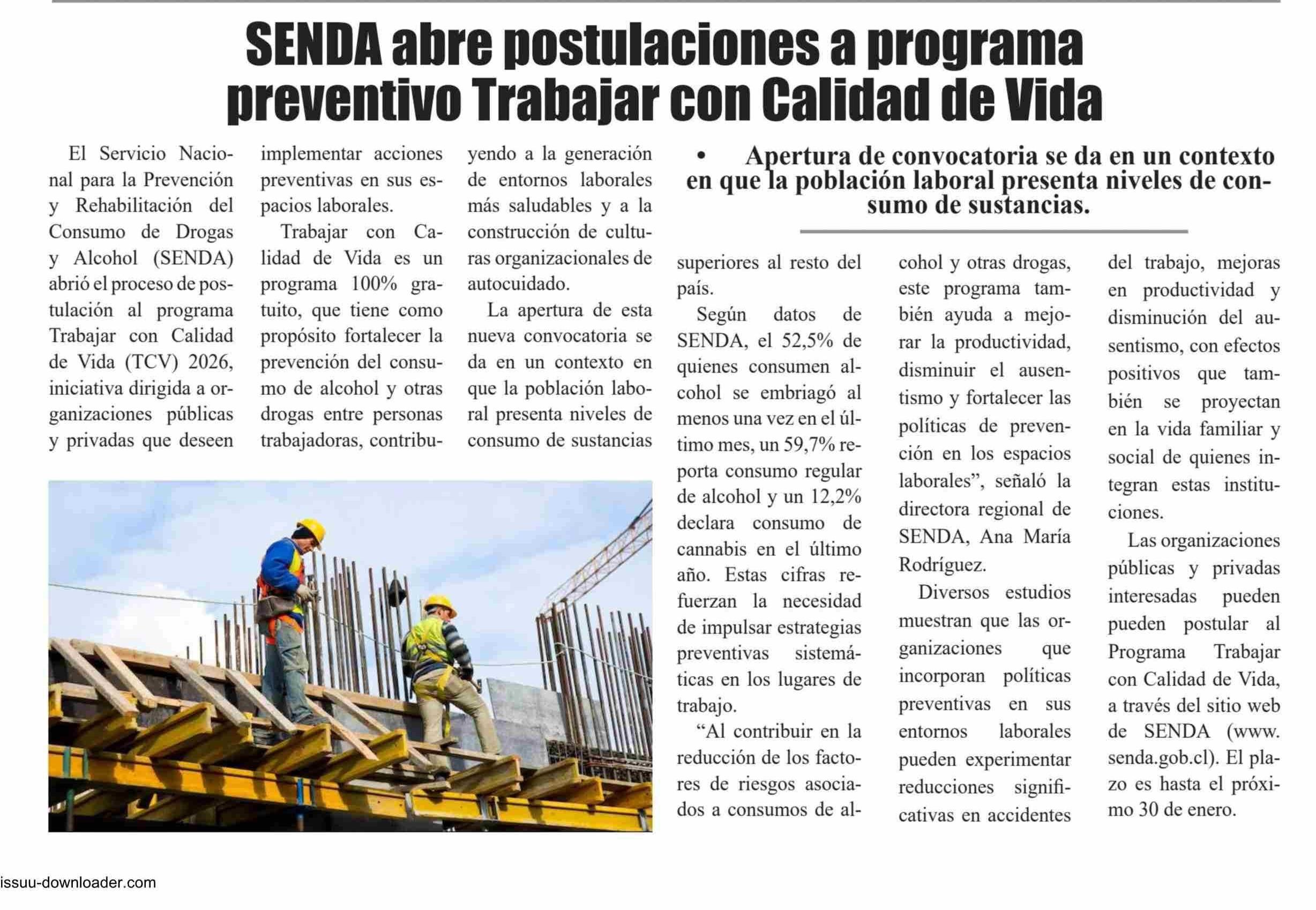 SENDA abre postulaciones a programa preventivo Trabajar con Calidad de Vida
