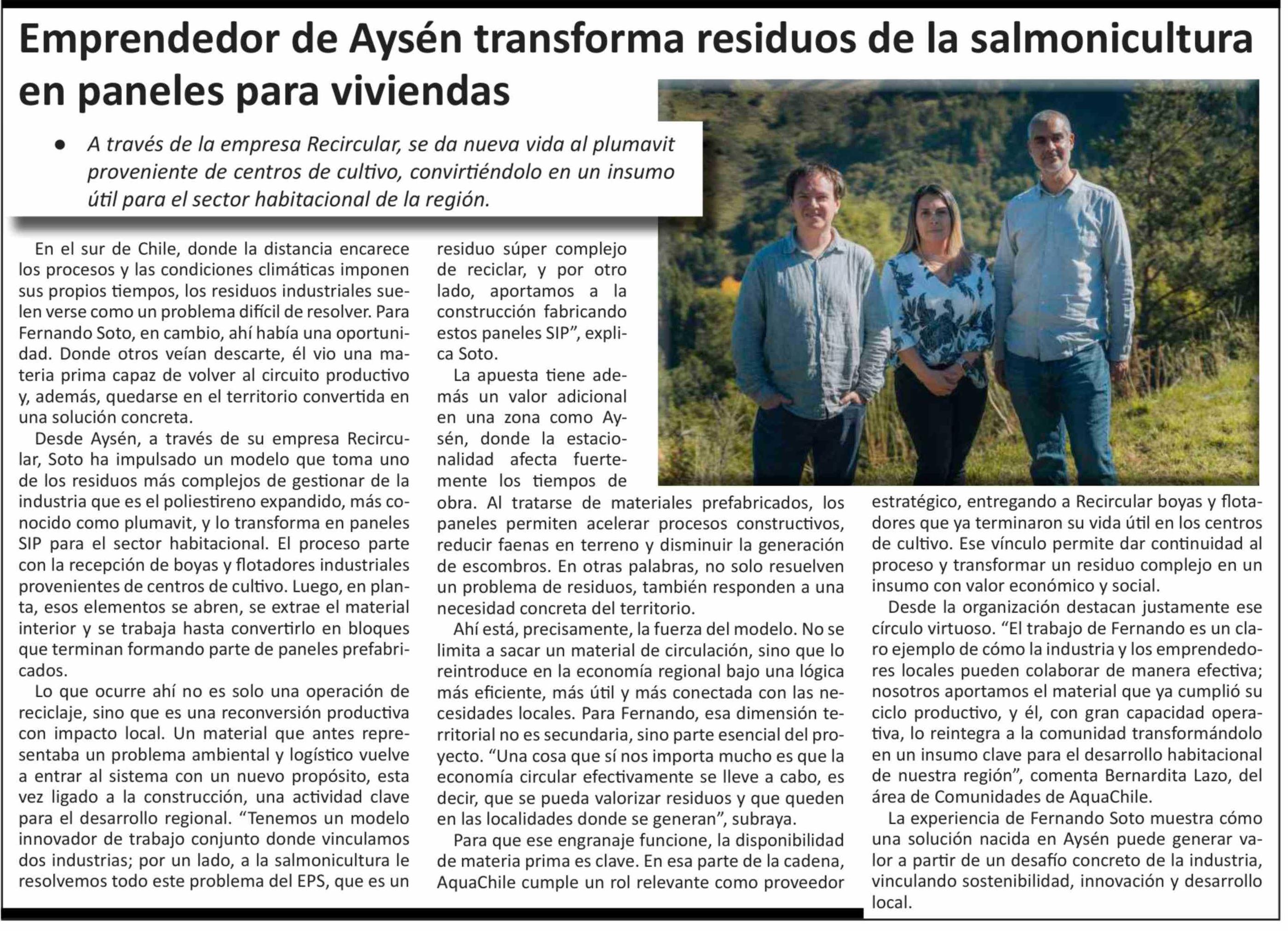 Emprendedor de Aysén transforma residuos de la salmonicultura en paneles para viviendas