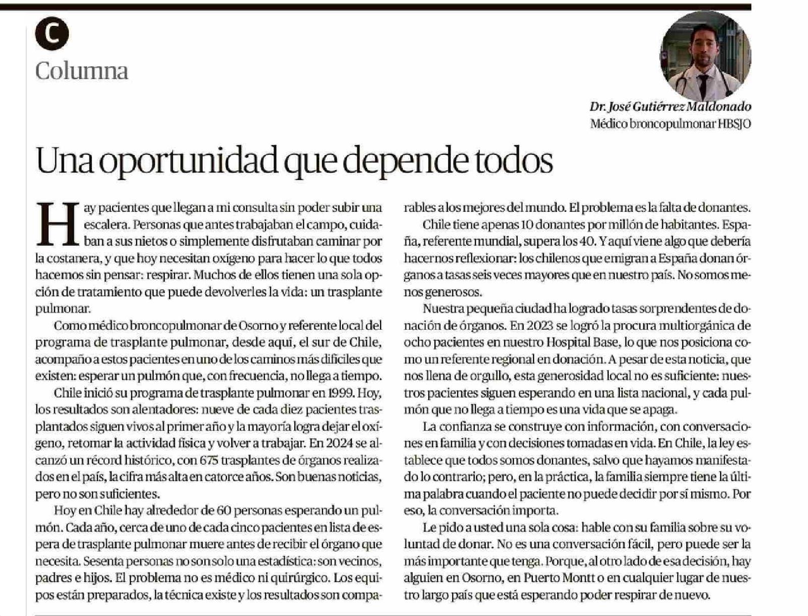 COLUMNAS DE OPINIÓN: Una oportunidad que depende todos