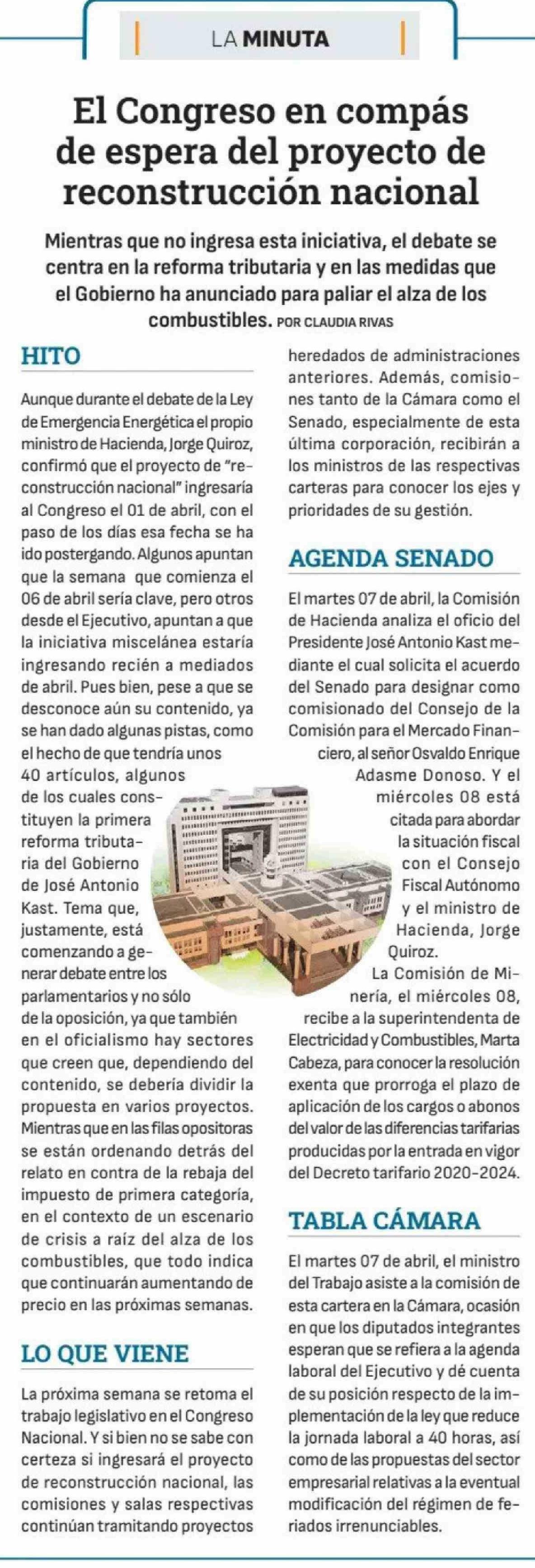 El Congreso en compás de espera del proyecto de reconstrucción nacional
