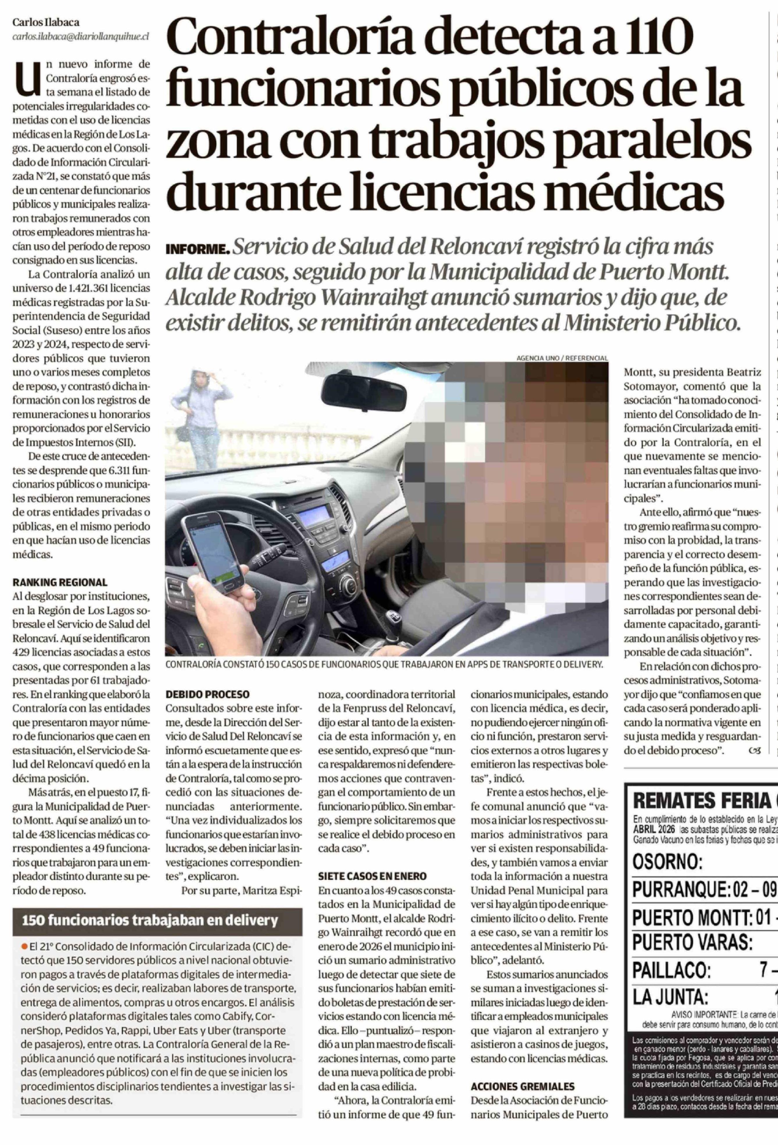 Título: Contraloría detecta a 110 funcionarios públicos de la zona con trabajos paralelos durante licencias médicas