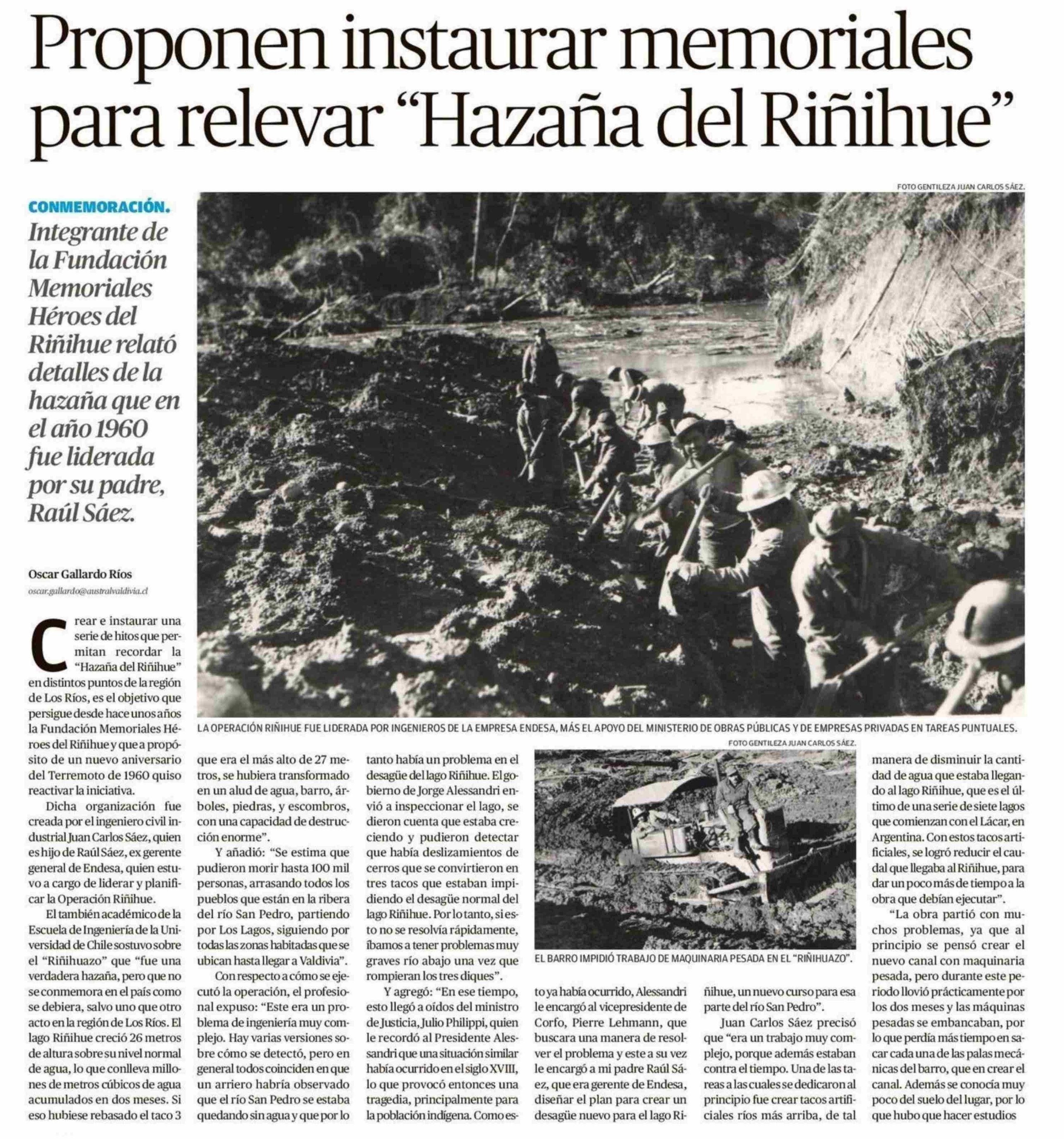 Proponen instaurar memoriales para relevar “Hazaña del Riñihue”