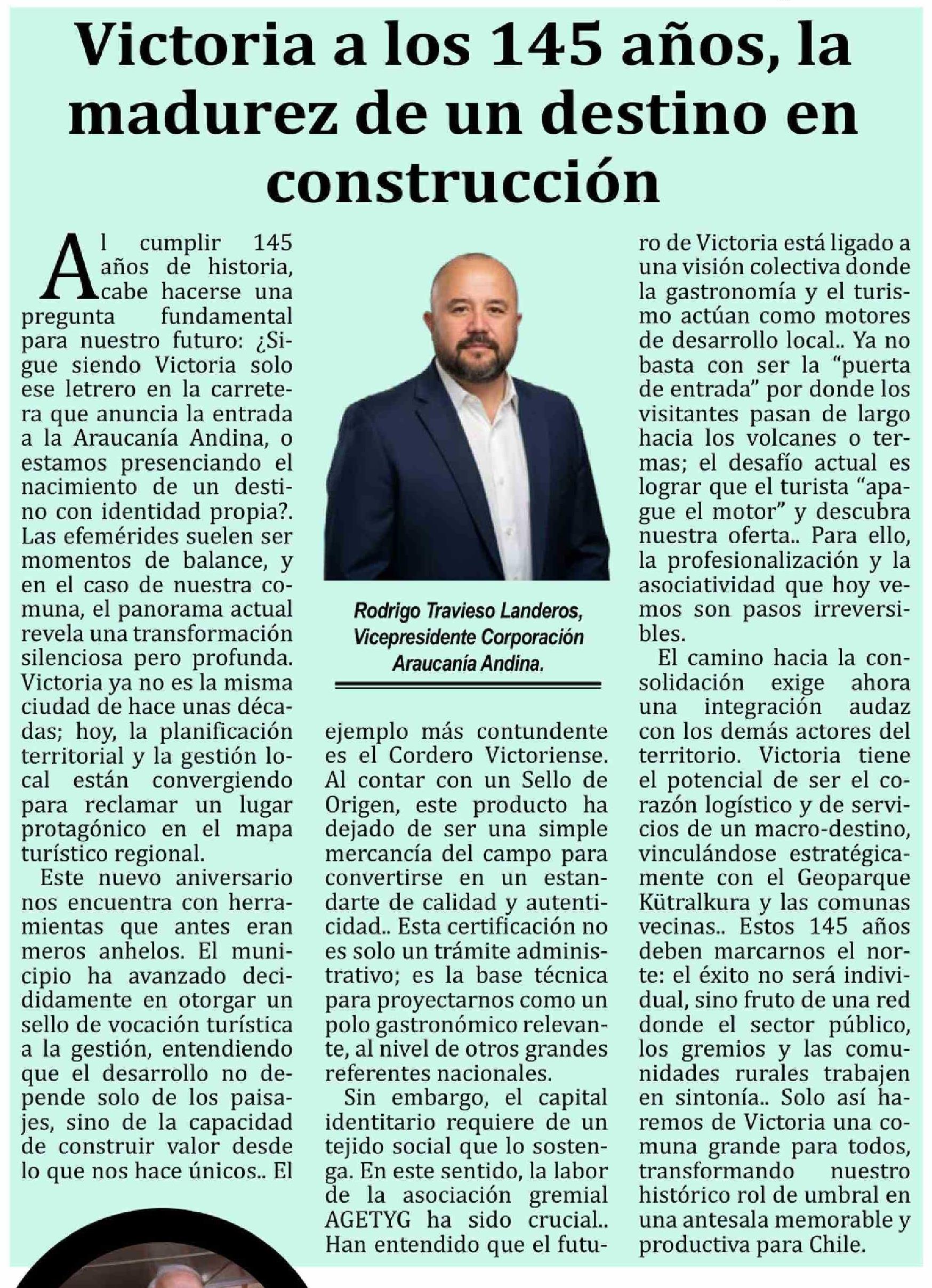 Columnas de Opinión: Victoria a los 145 años, la madurez de un destino en construcción